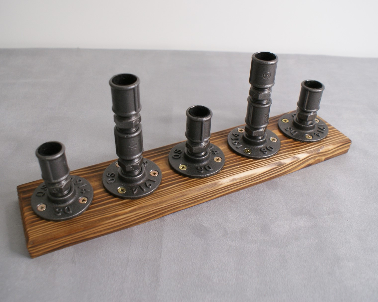 Przedstawiamy ręcznie wykonany świecznik w połączeniu dwóch stylów: industrialnego z uwagi na wykorzystanie stalowych rur hydraulicznych oraz stylu loftowego dzięki ciepłu jakie daje nam postarzałe lakierowane drewno.