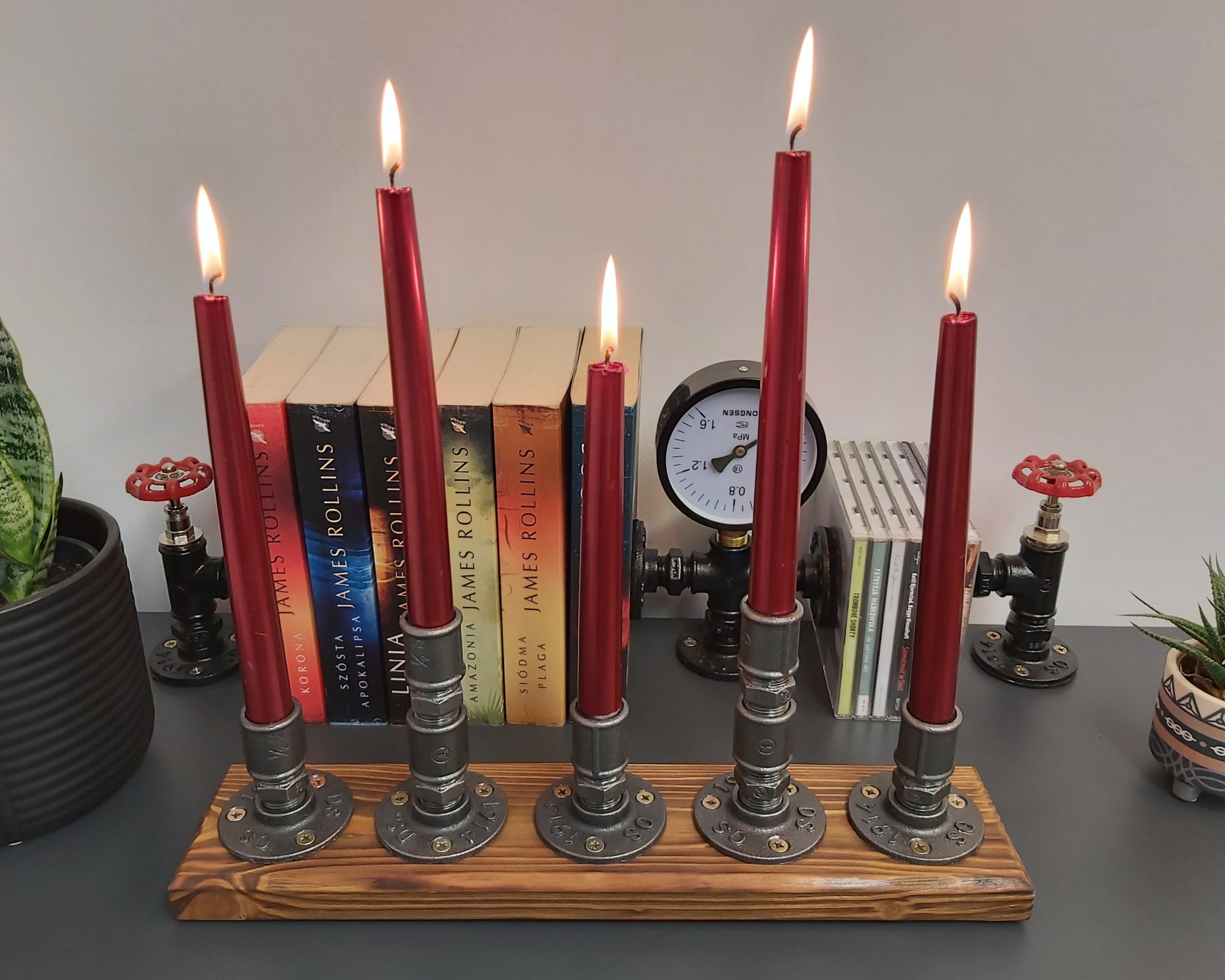 Oferowany świecznik to wspaniała ozdoba wnętrza w stylach industrialnym i loftowym dla: