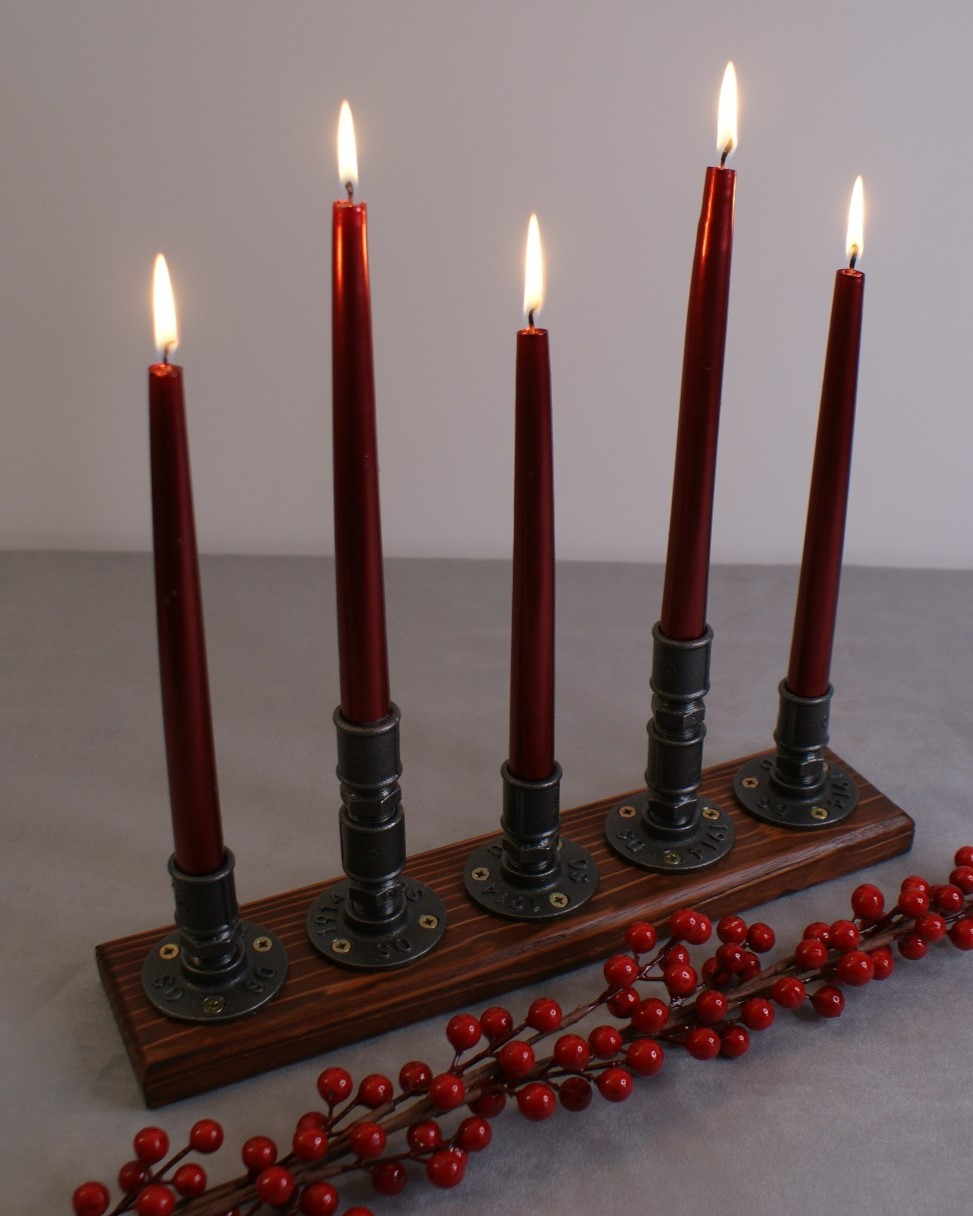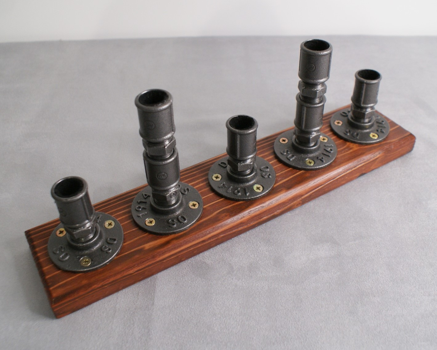 Przedstawiamy ręcznie wykonany świecznik w połączeniu dwóch stylów: industrialnego z uwagi na wykorzystanie stalowych rur hydraulicznych oraz stylu loftowego dzięki ciepłu jakie daje nam postarzałe lakierowane drewno.
