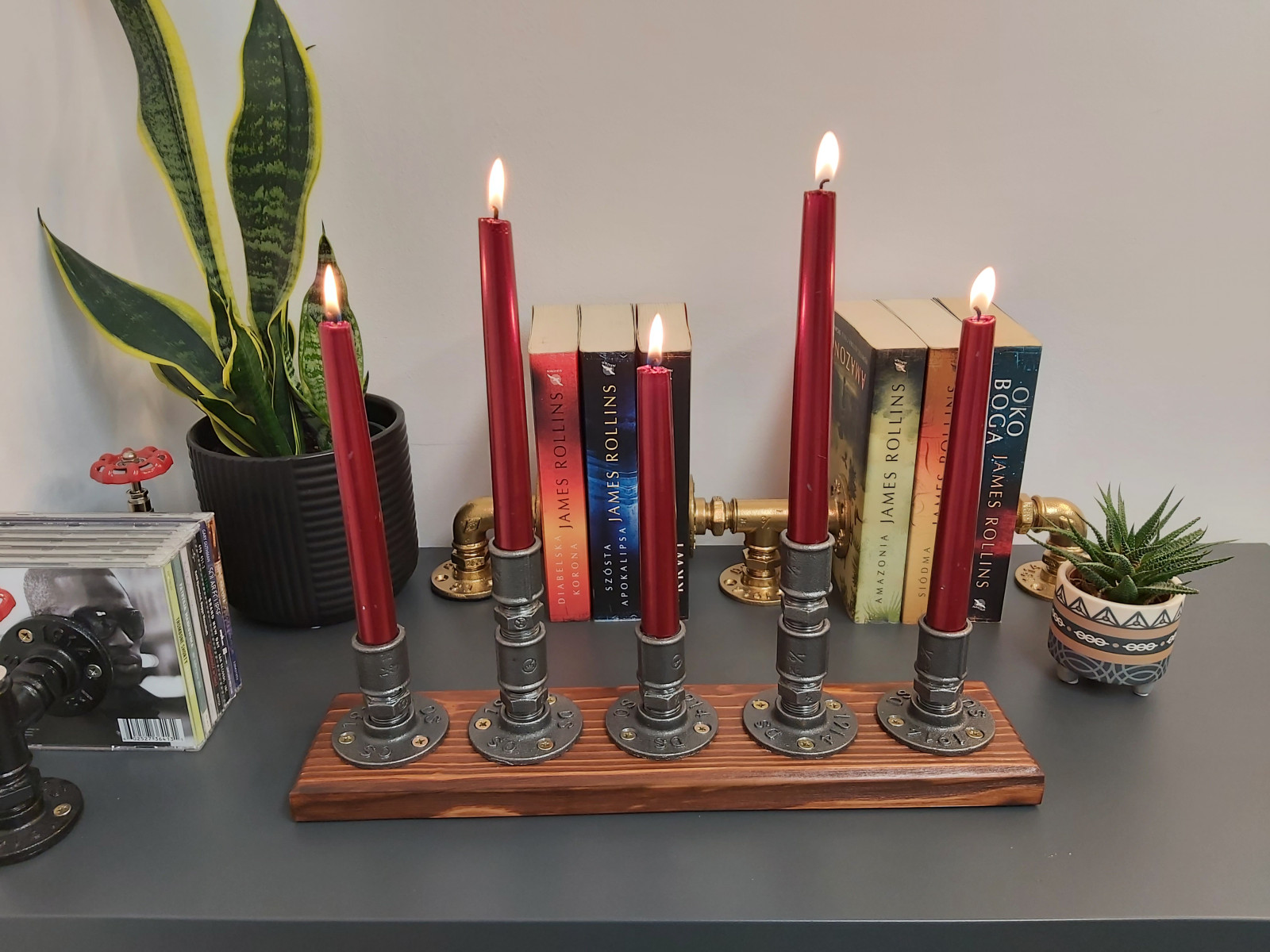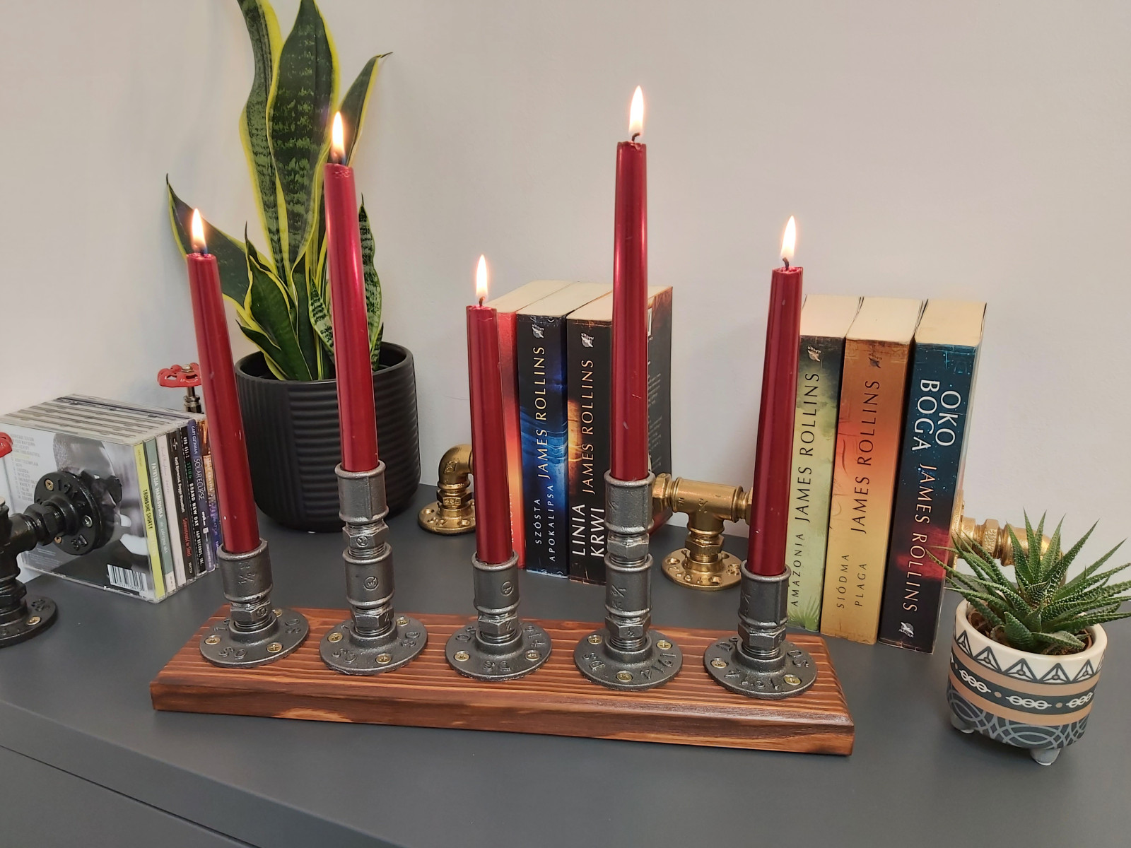 Oferowany świecznik to wspaniała ozdoba wnętrza w stylach industrialnym i loftowym dla: