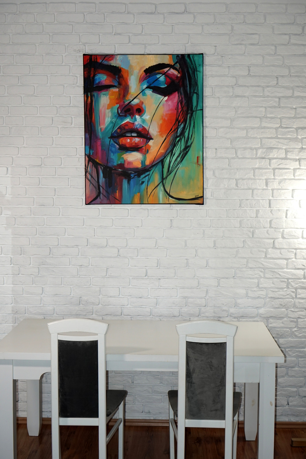 To praca, która ożywia przestrzeń, wnosząc do niej aurę emocji, siły i artystycznego spokoju — jak cichy sen zamknięty w rytmie barw.