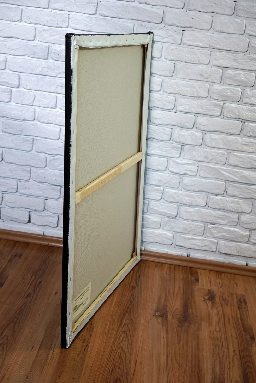 na lniano-bawełnianym płótnie naciągniętym na drewniany blejtram, finalnie zabezpieczony werniksem