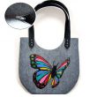 Mam dzisiaj przyjemność przedstawić. Elegancką a zarazem nowoczesną torebkę wykonaną z 4mm filcu. W całości zaprojektowaną i wykonaną przez dyplomowanego artystę plastyka!!!! Torebka wykonana z dbałością o najdrobniejsze szczegóły. Wymiary torebki: wys. na środku ok 29,5 cm, szerokość w najszerszym punkcie ok 39,5cm. Pomieści wiele najpotrzebniejszych rzeczy, idealna do szkoły, na uczelnię czy do pracy. Front torebki zaakcentowany został malowanym wzorem. Zapinana na zamek. Wewnątrz znajdują się 2 praktyczne kieszonki oraz uchwyt na klucze.