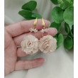 Kolczyki kwiaty beżowe ecru na wesele ślub