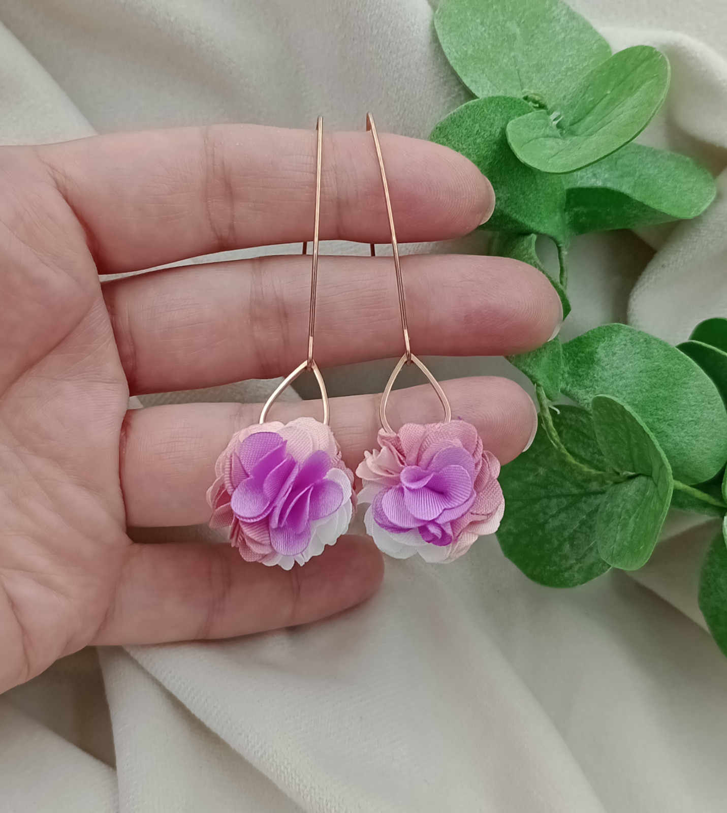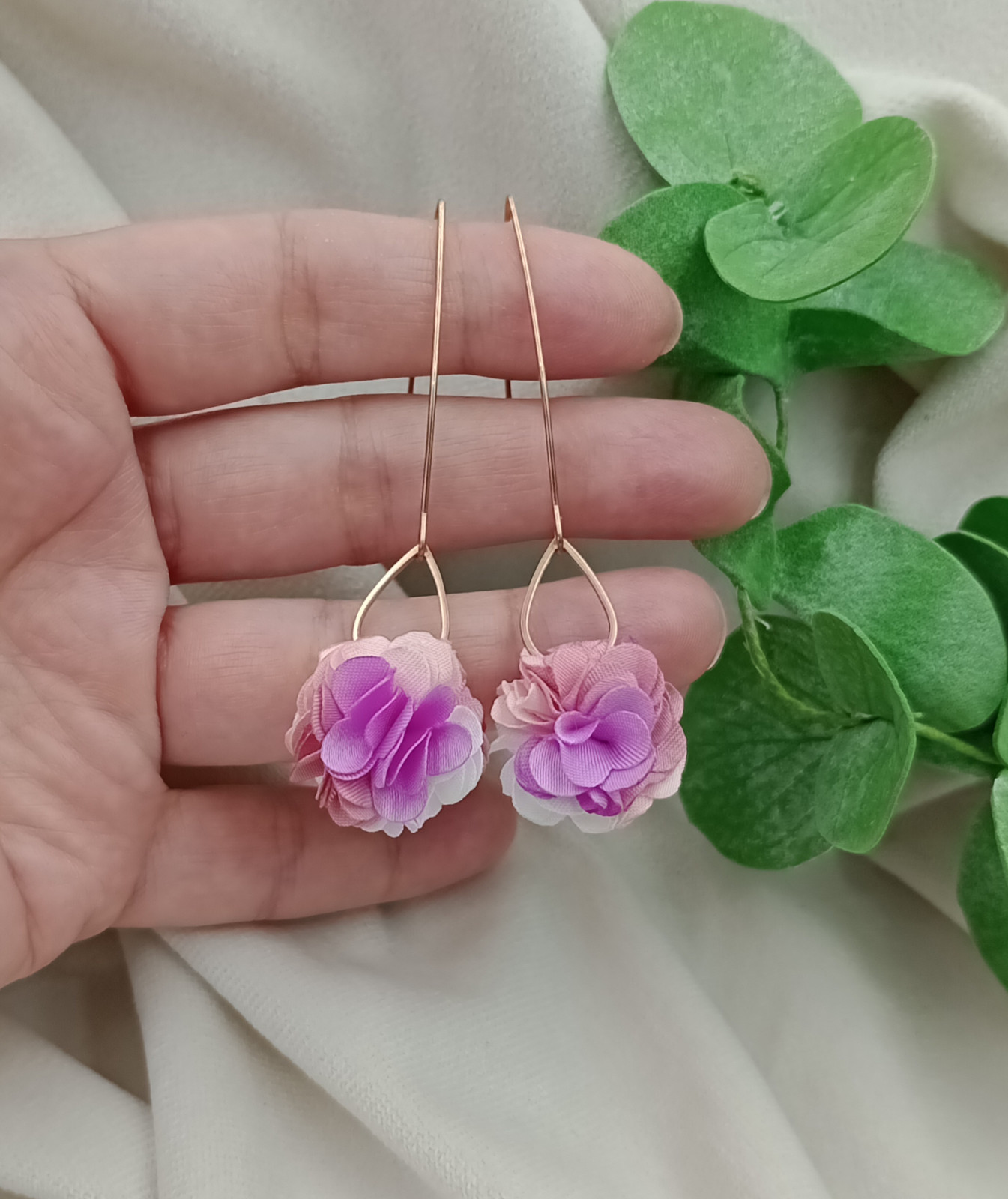 Kolczyki kwiaty pastelowe, zgaszony róż, matowy róż, lawendowe