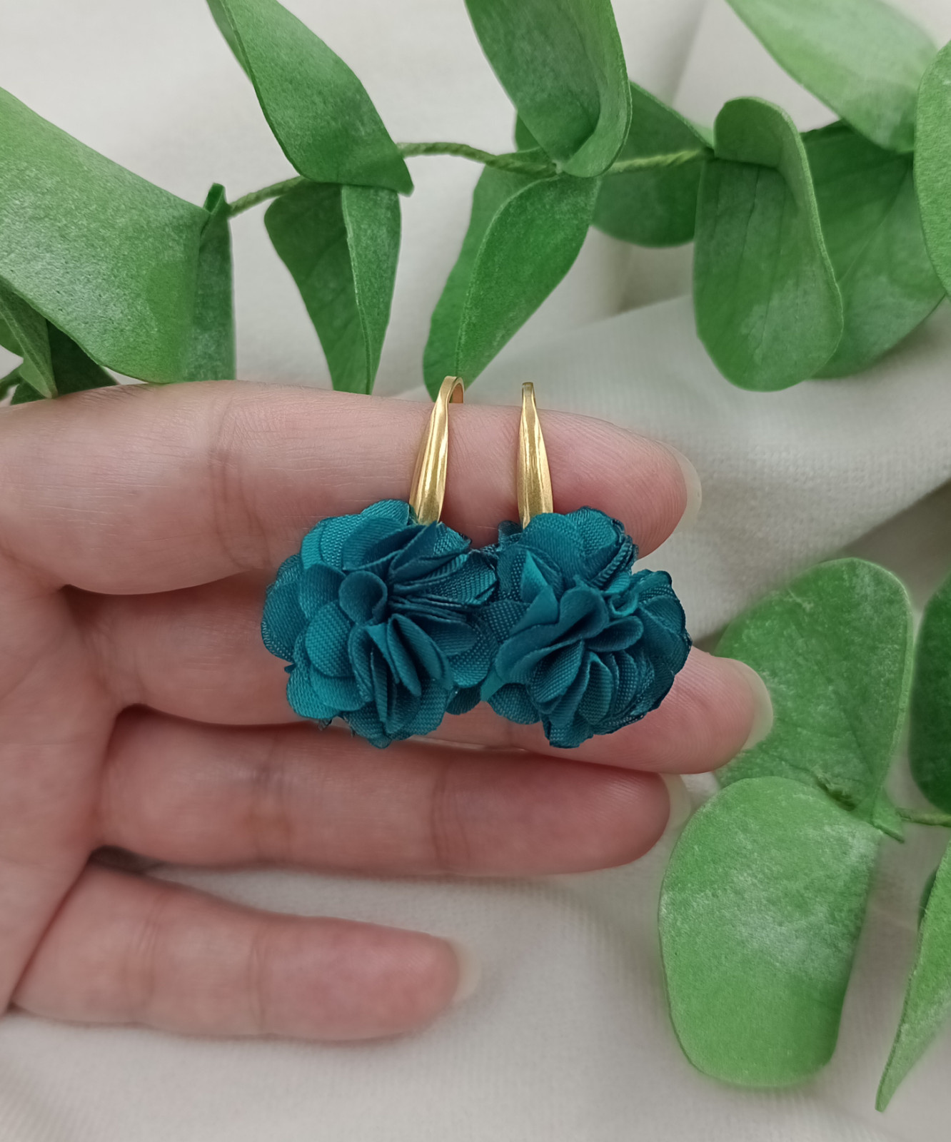 Małe kwiatowe kolczyki szmaragdowa zieleń petrol