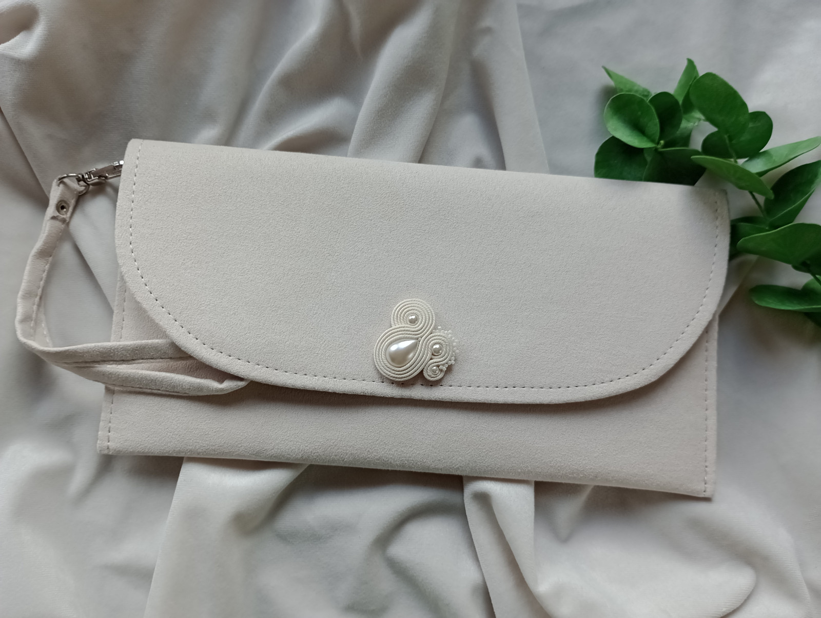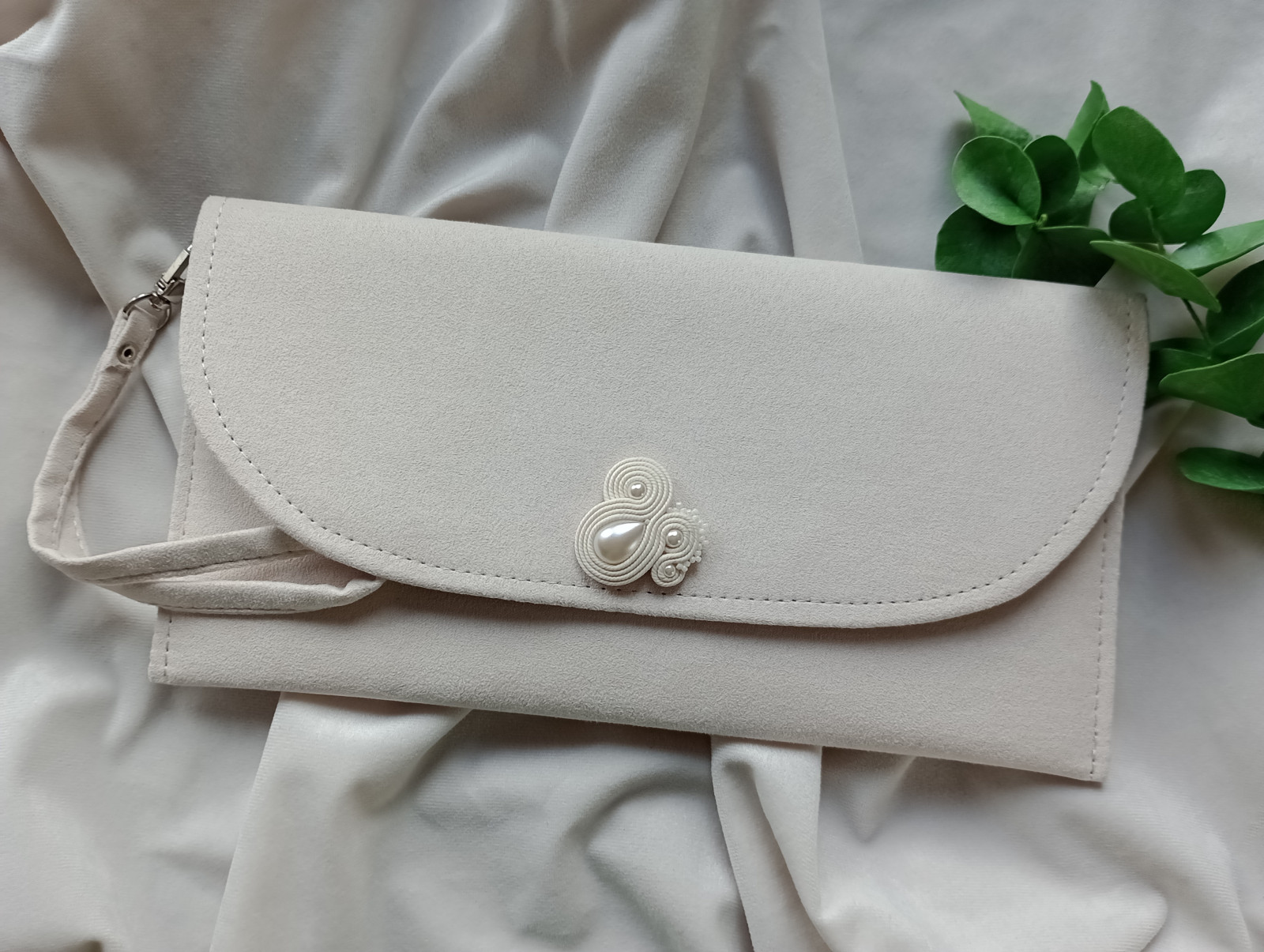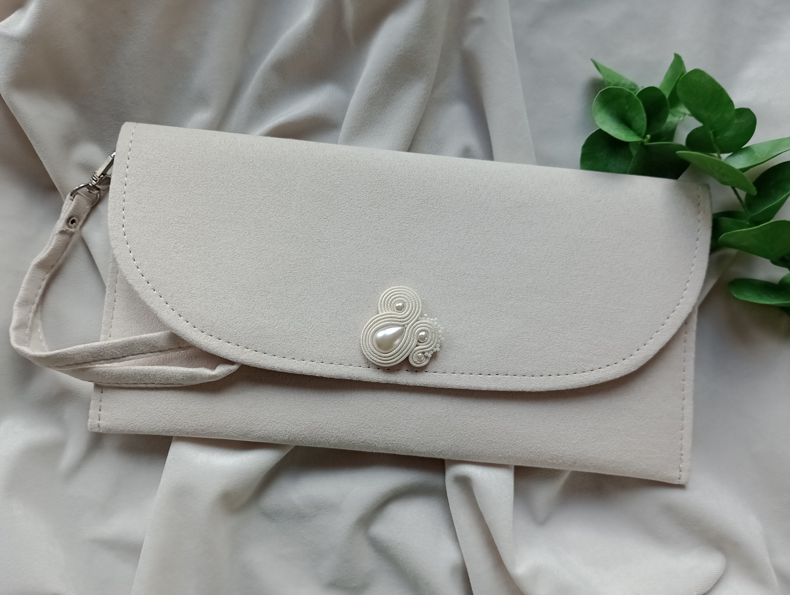Beżowa kopertówka, kremowa torebka, kopertówka ivory do ręki