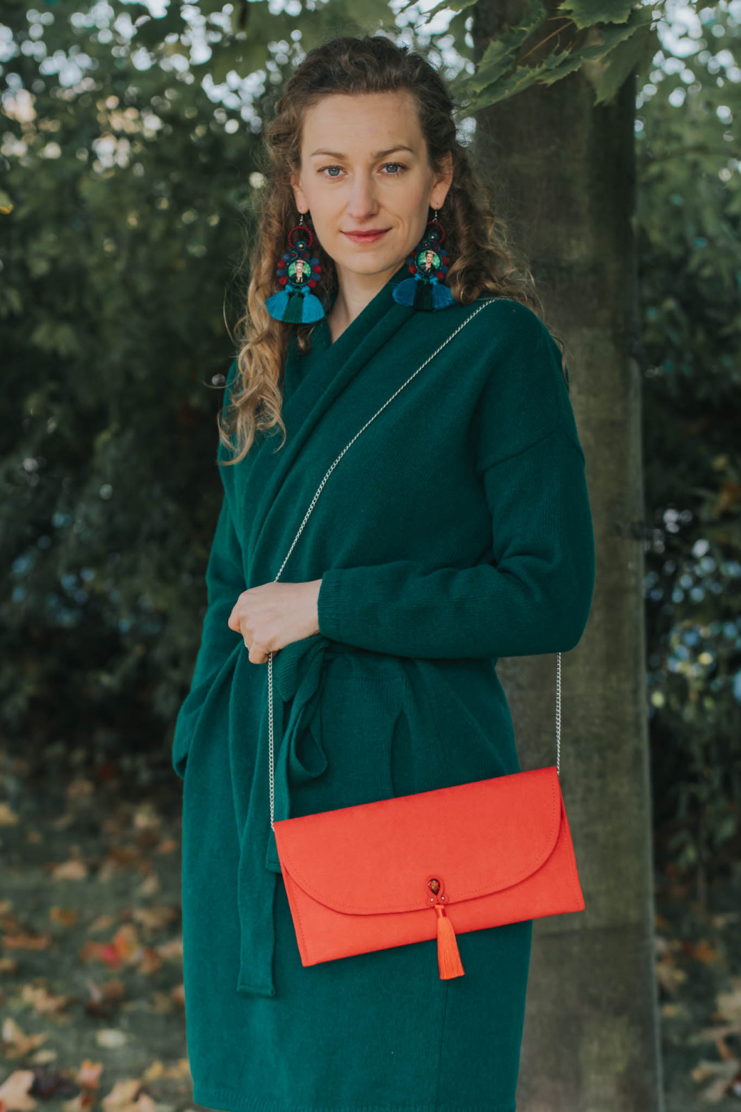 Pomieści kilka drobiazgów – pomadkę, telefon, chusteczki, klucze – standardowa pojemność kopertówki 🙂