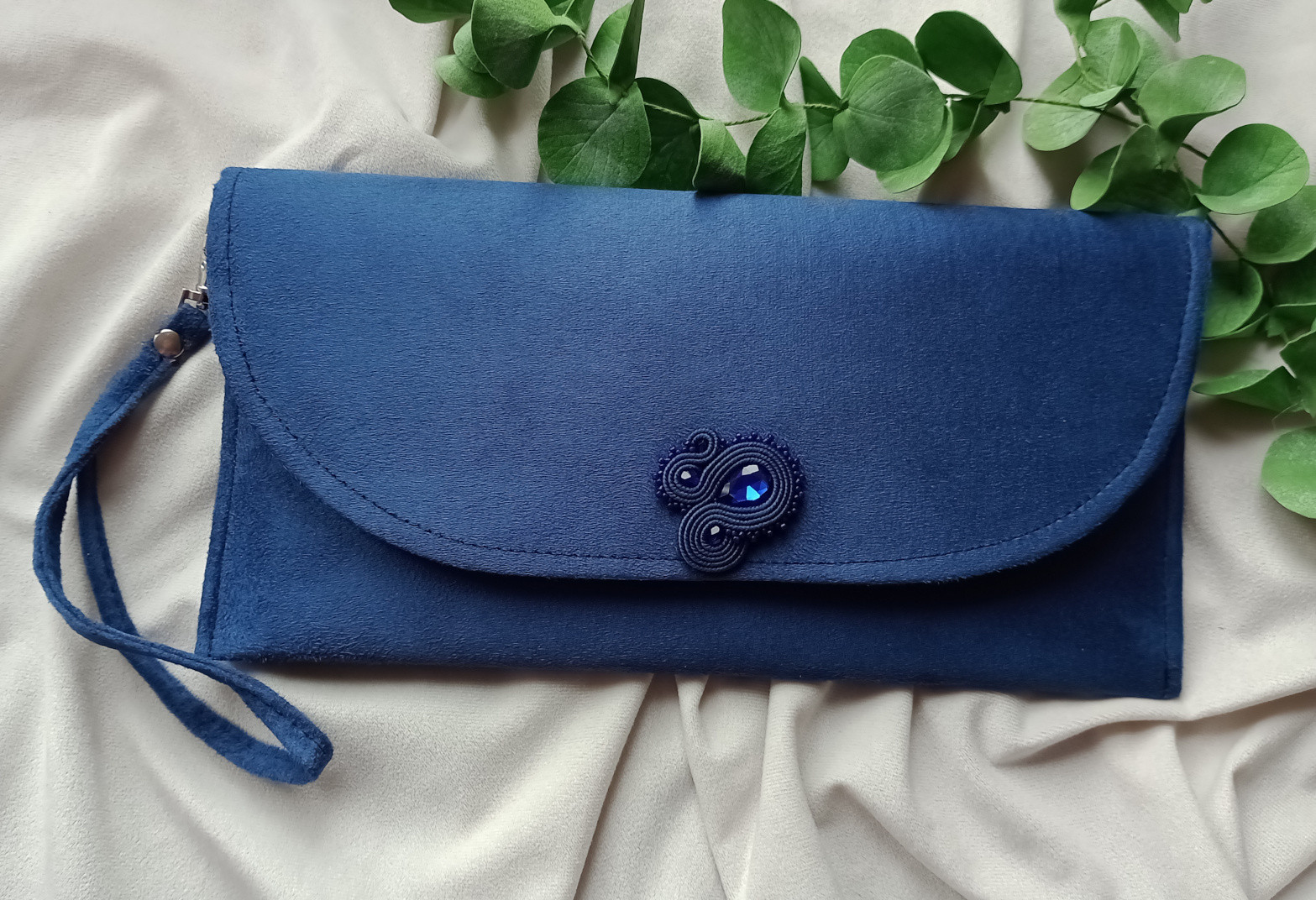 Niebieska kopertówka, granatowa torebka, kopertówka do ręki