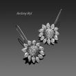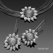 Autorskie kolczyki zaprojektowane i wykonane od podstaw w naszej pracowni, przedstawiające okazałe (30 mm) kwiaty słonecznika. Srebro oksydowane i polerowane. Długie otwarte bigle przylutowane na stałe. Do kompletu można dokupić naszyjnik.