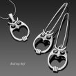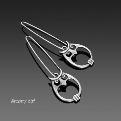 Urocze kolczyki - sówki, wykonane z oksydowanego i polerowanego srebra. Sówki zostały zawieszone na wykonanych własnoręcznie podłużnych biglach. Biżuteria "z przymrużeniem oka" ale ciekawa i oryginalna. Do kompletu polecamy wisiorek oraz bransoletkę.