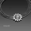Uroczy naszyjnik zaprojektowany i wykonany od podstaw w naszej pracowni przedstawiający kwiat słonecznika. Srebro oksydowane i polerowane. Słonecznik został zawieszony na obroży wykonanej z linki jubilerskiej, ze srebrnym zapięciem. Do naszyjnika polecamy kolczyki SŁONECZNIKI.