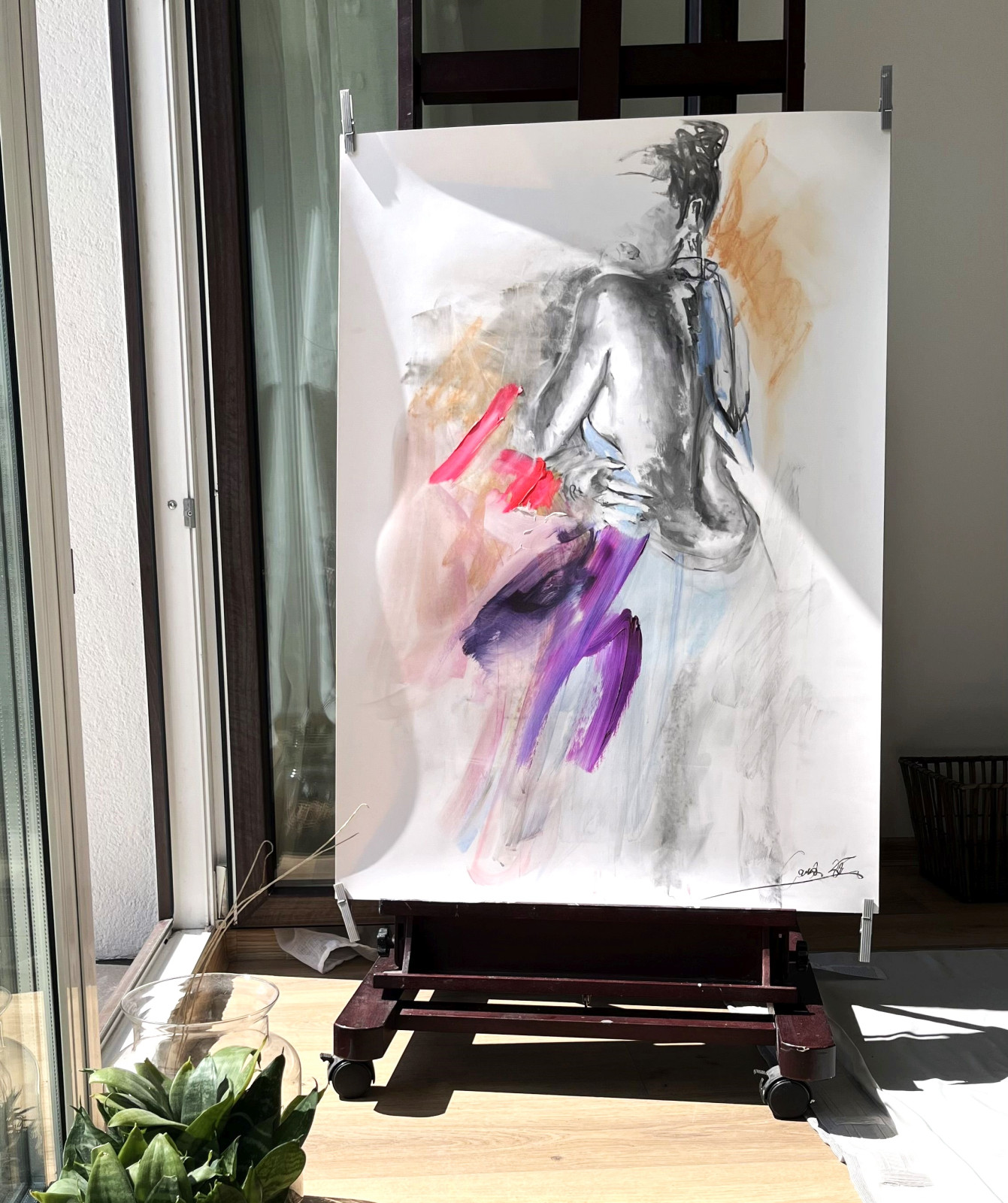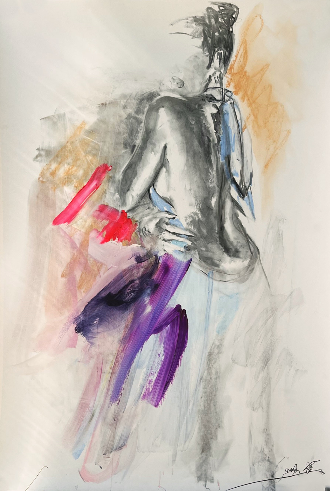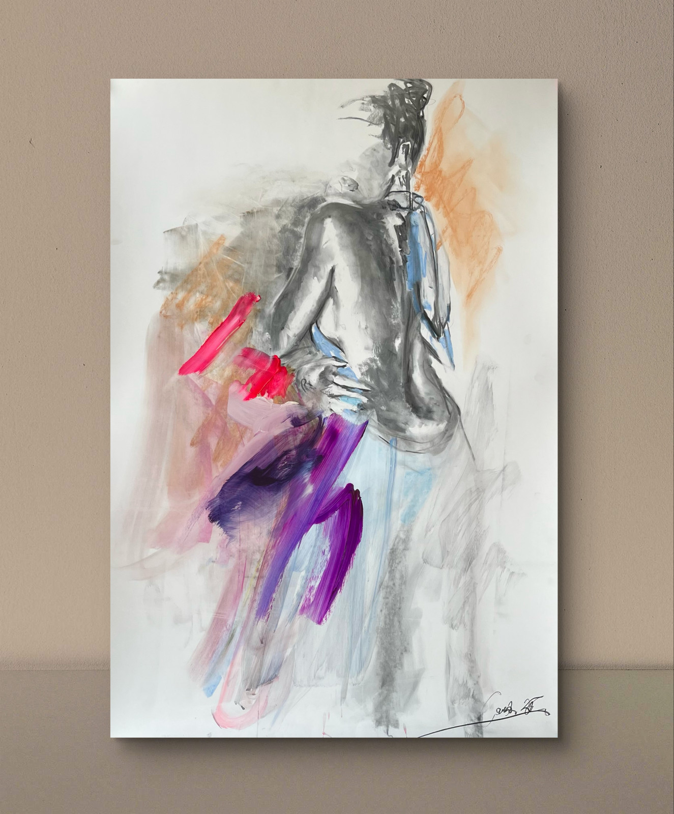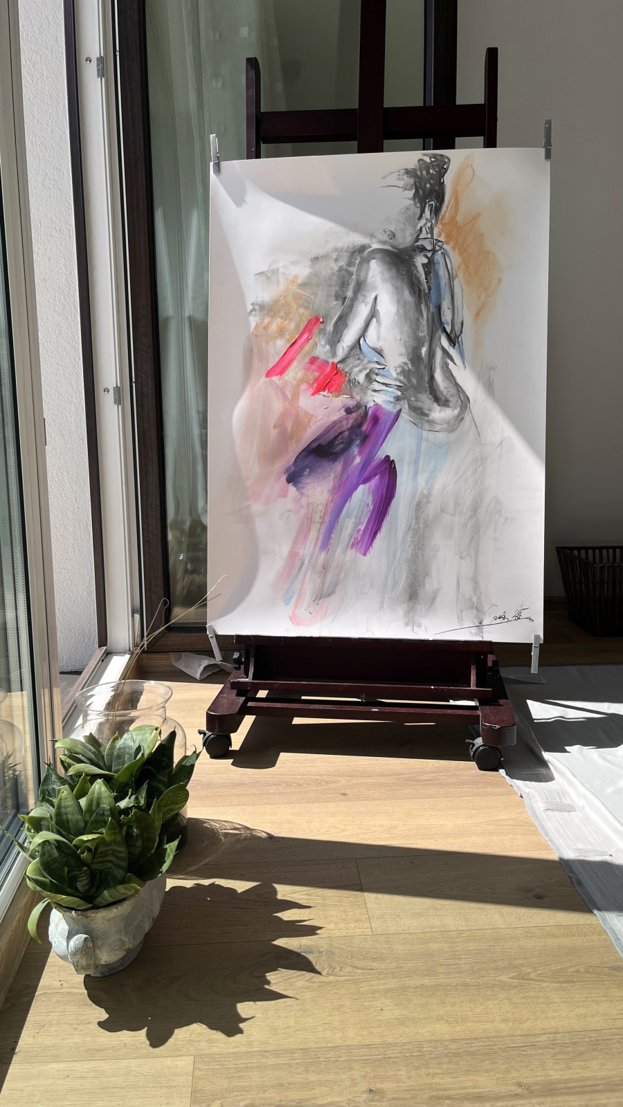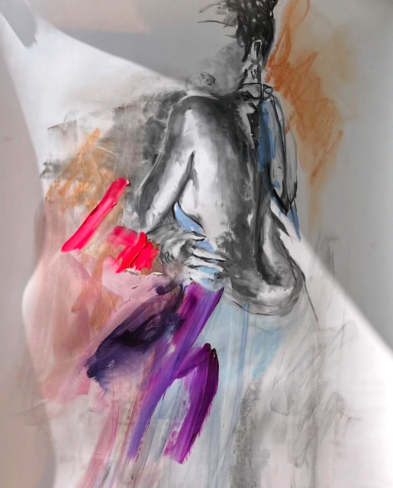 Przedstawiam Pracę w technice mieszanej - akryl i węgiel na papierze w tonacji ciepłęj bieli.
