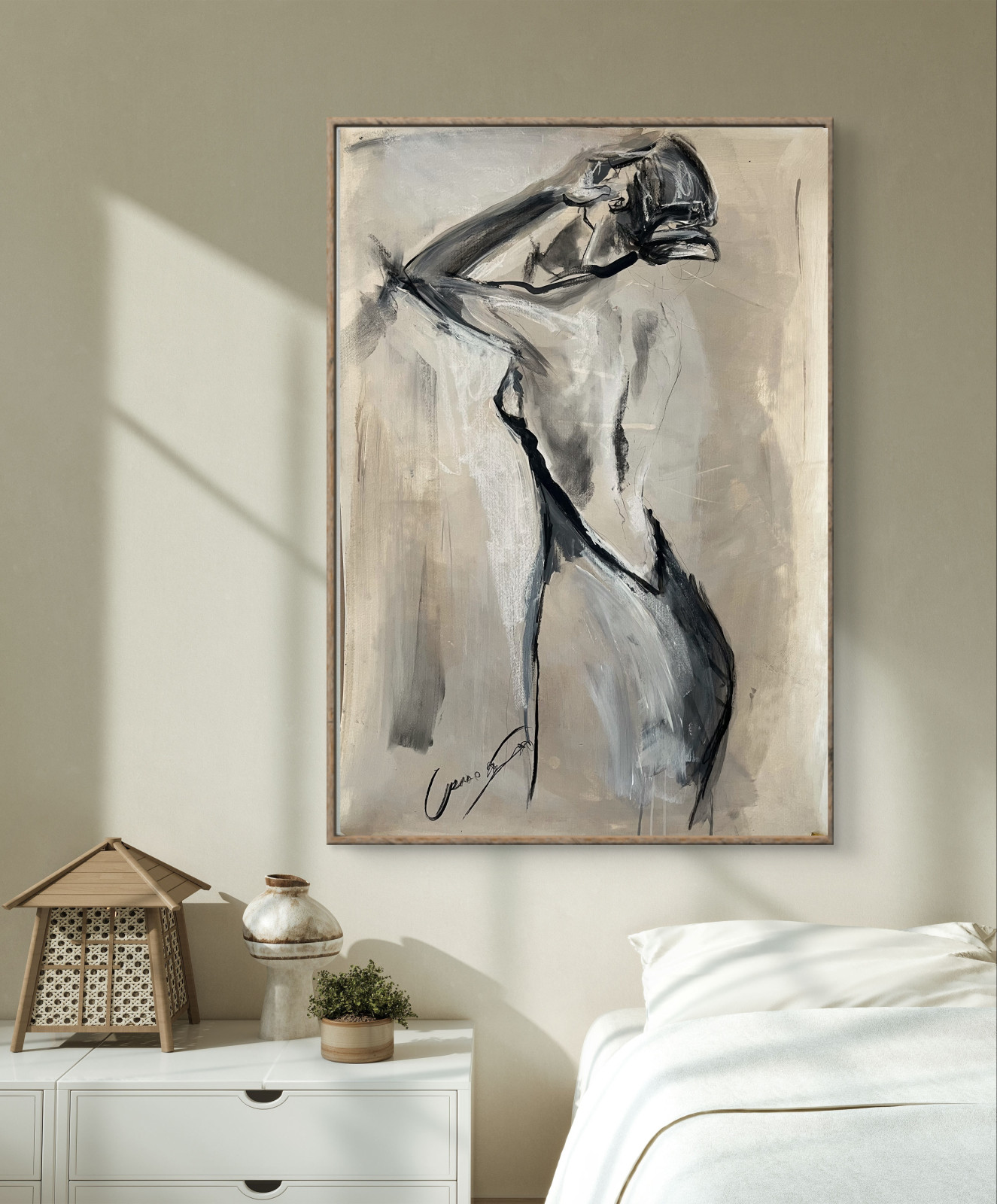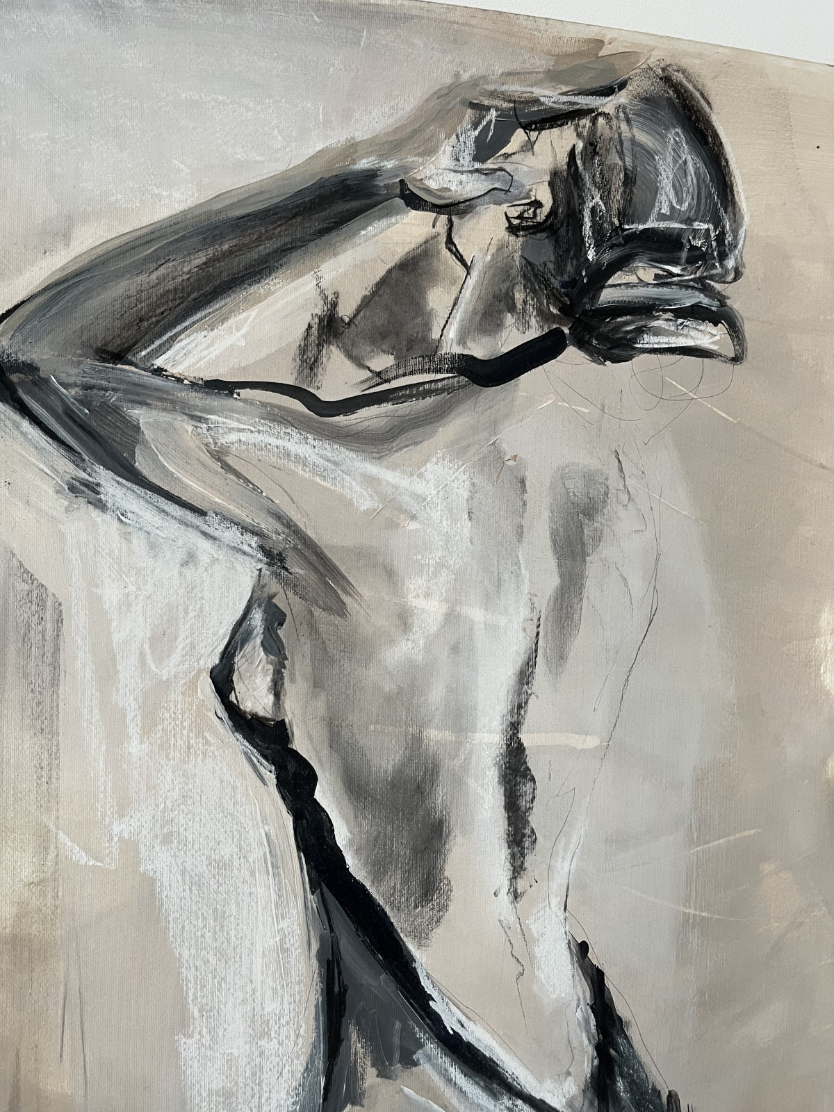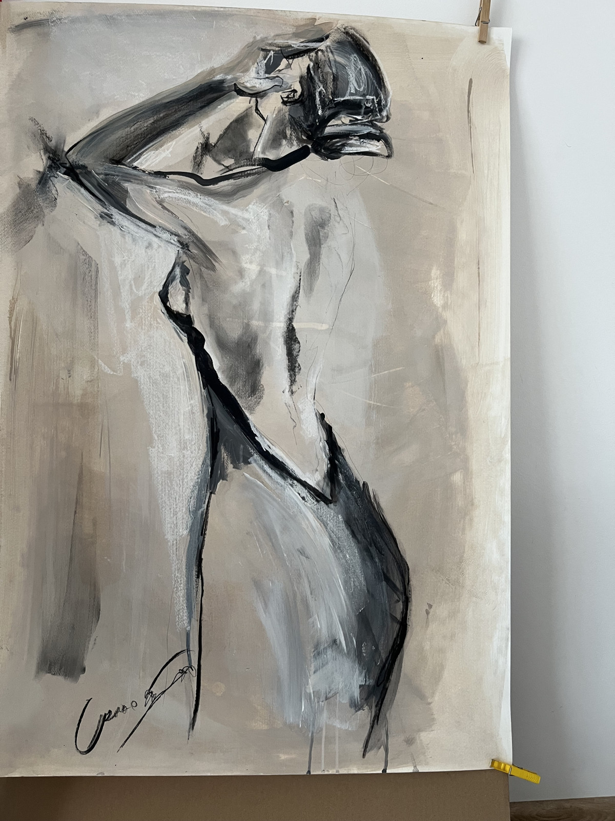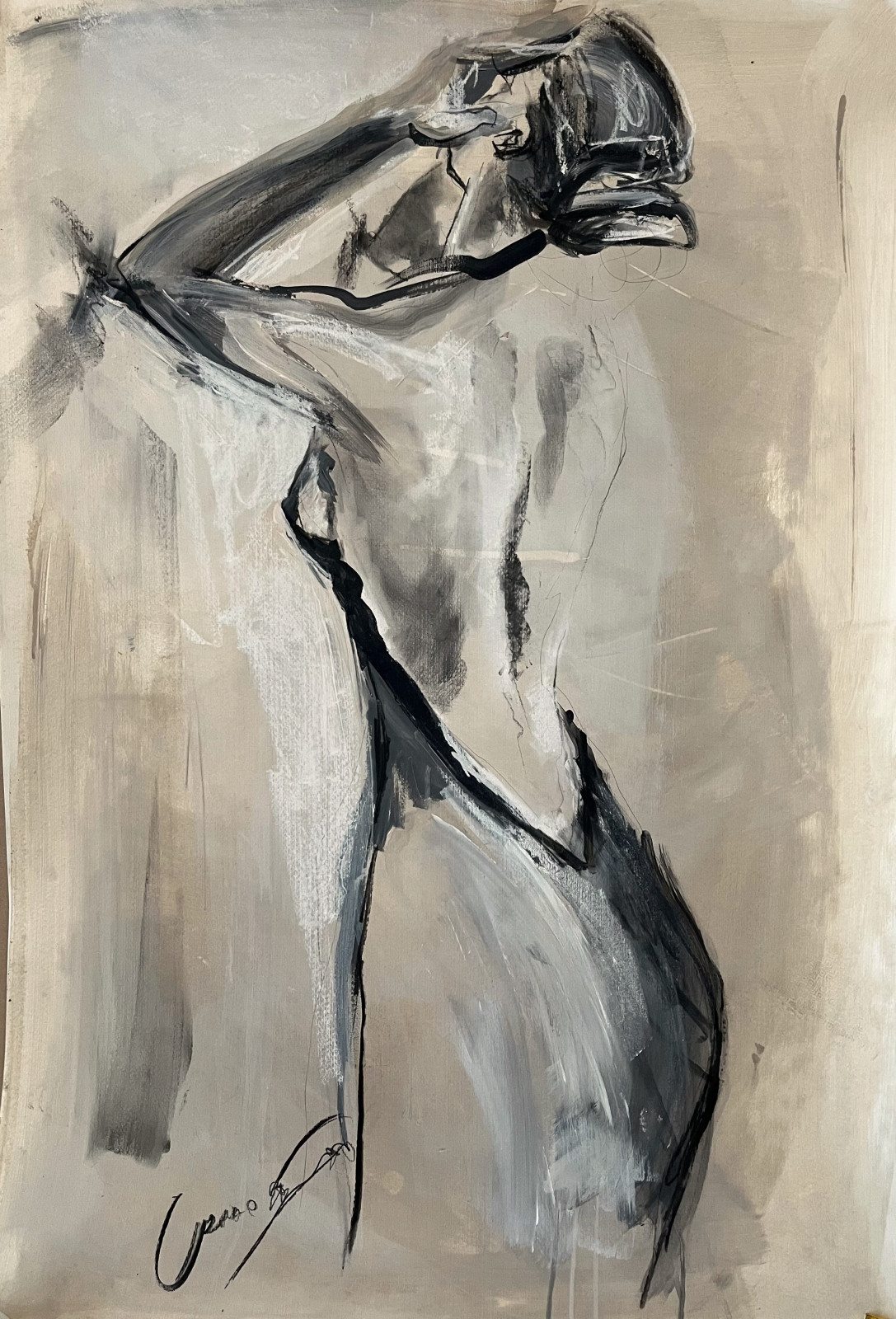 Przedstawiam pracę w technice akrylu i węgla na papierze.