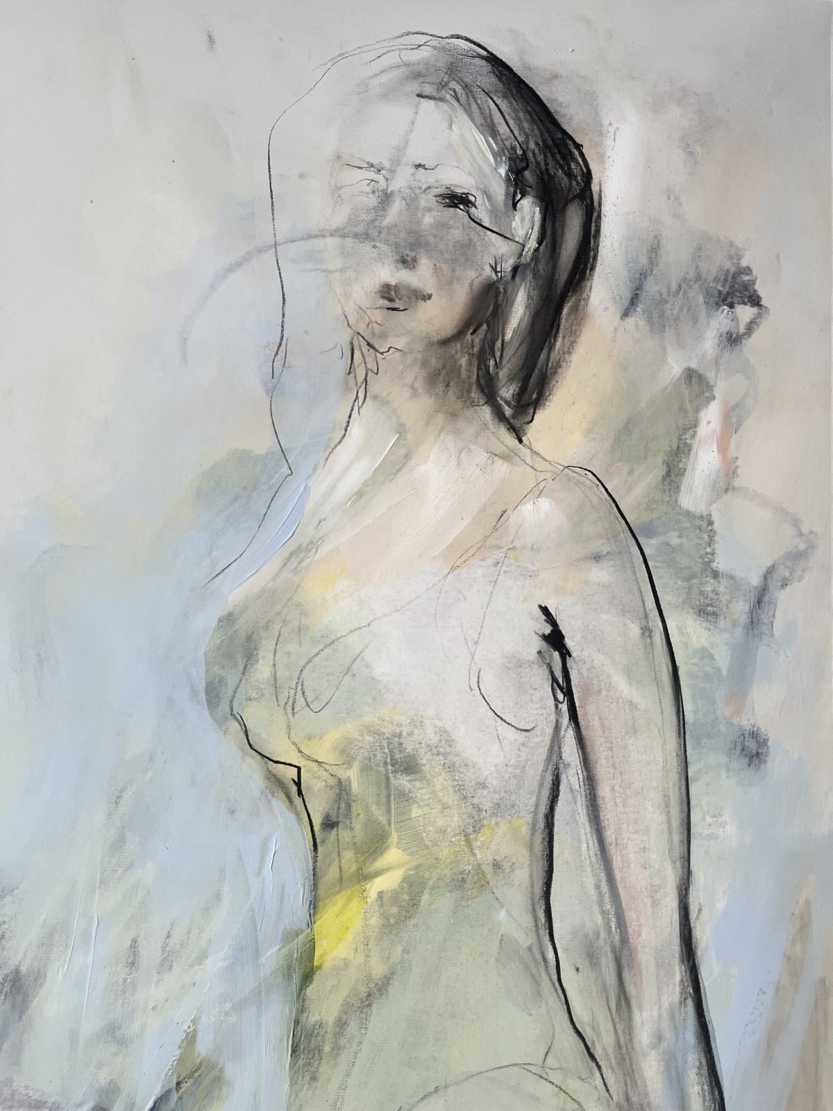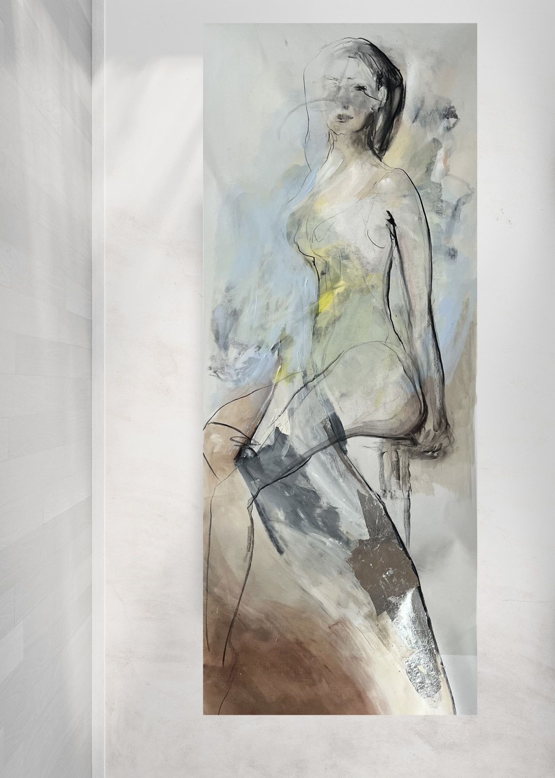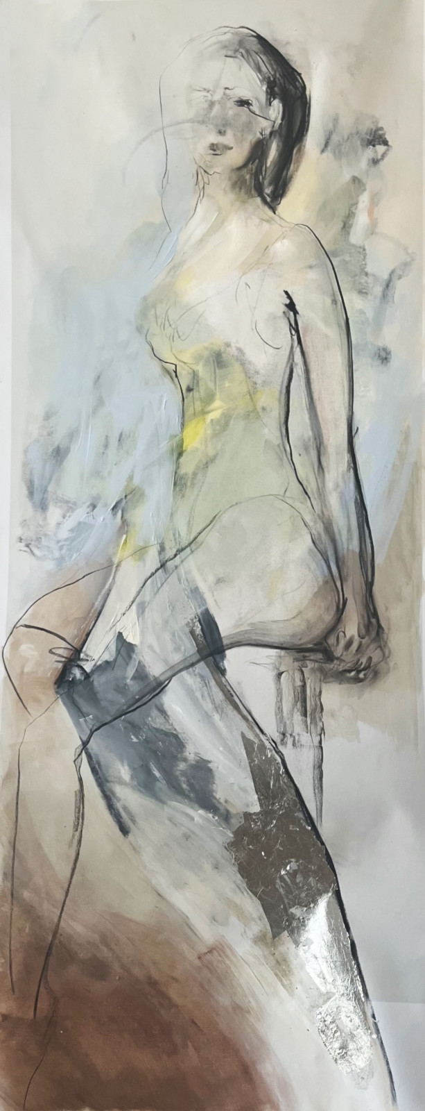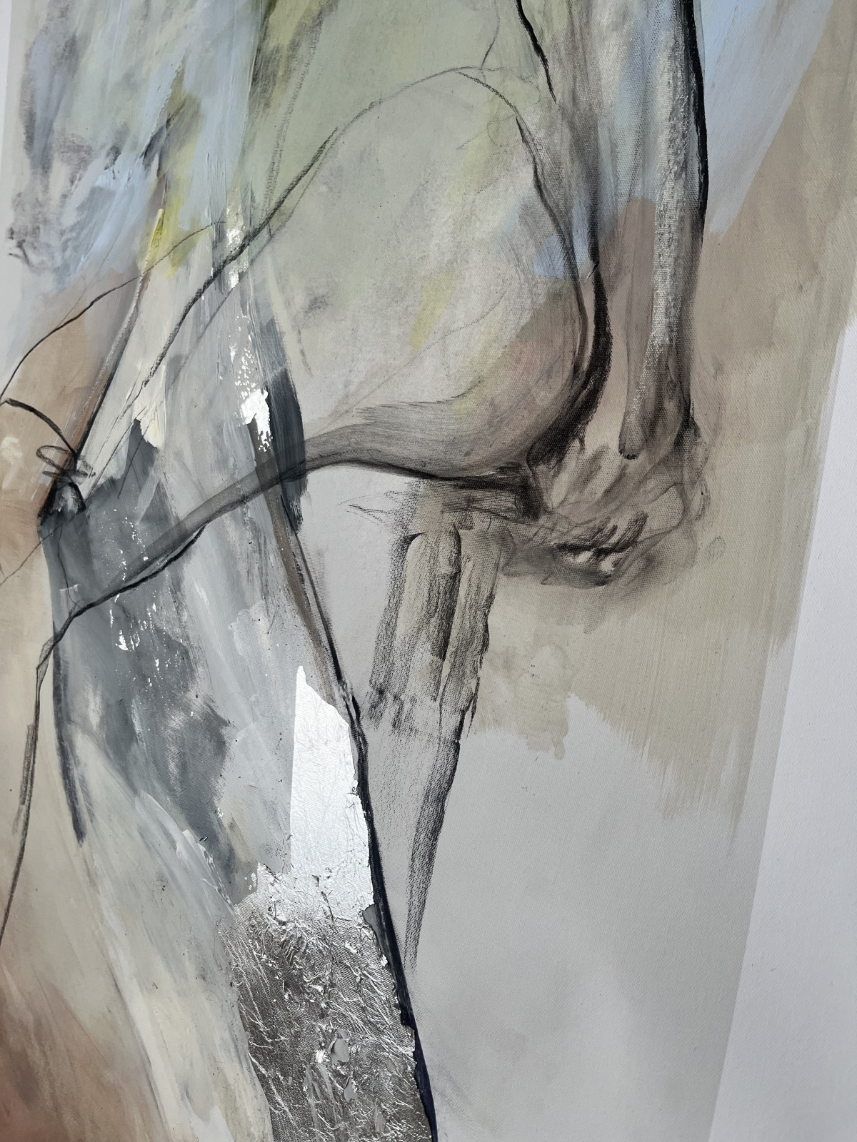Technika: węgiel, akryl i srebrny szlagmetal.