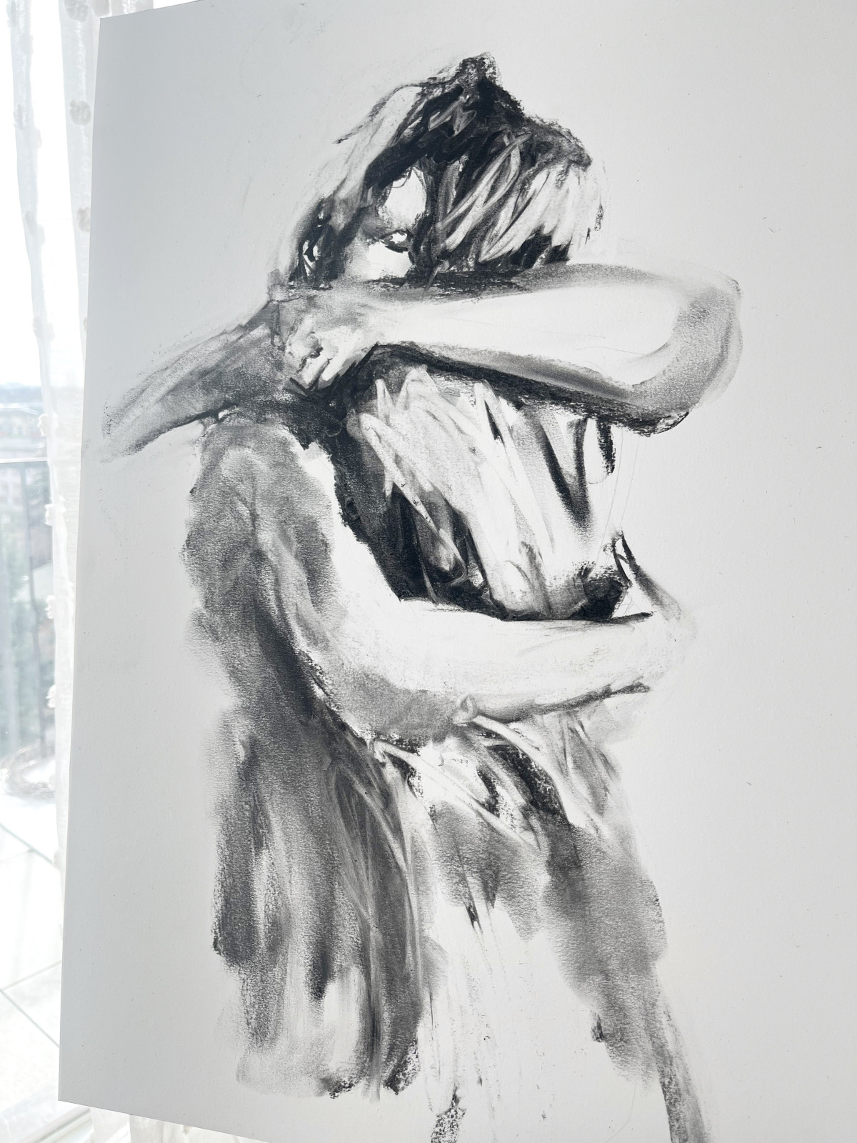 Rysunek zabezpieczony fiksatywą oraz sygnowany na froncie.