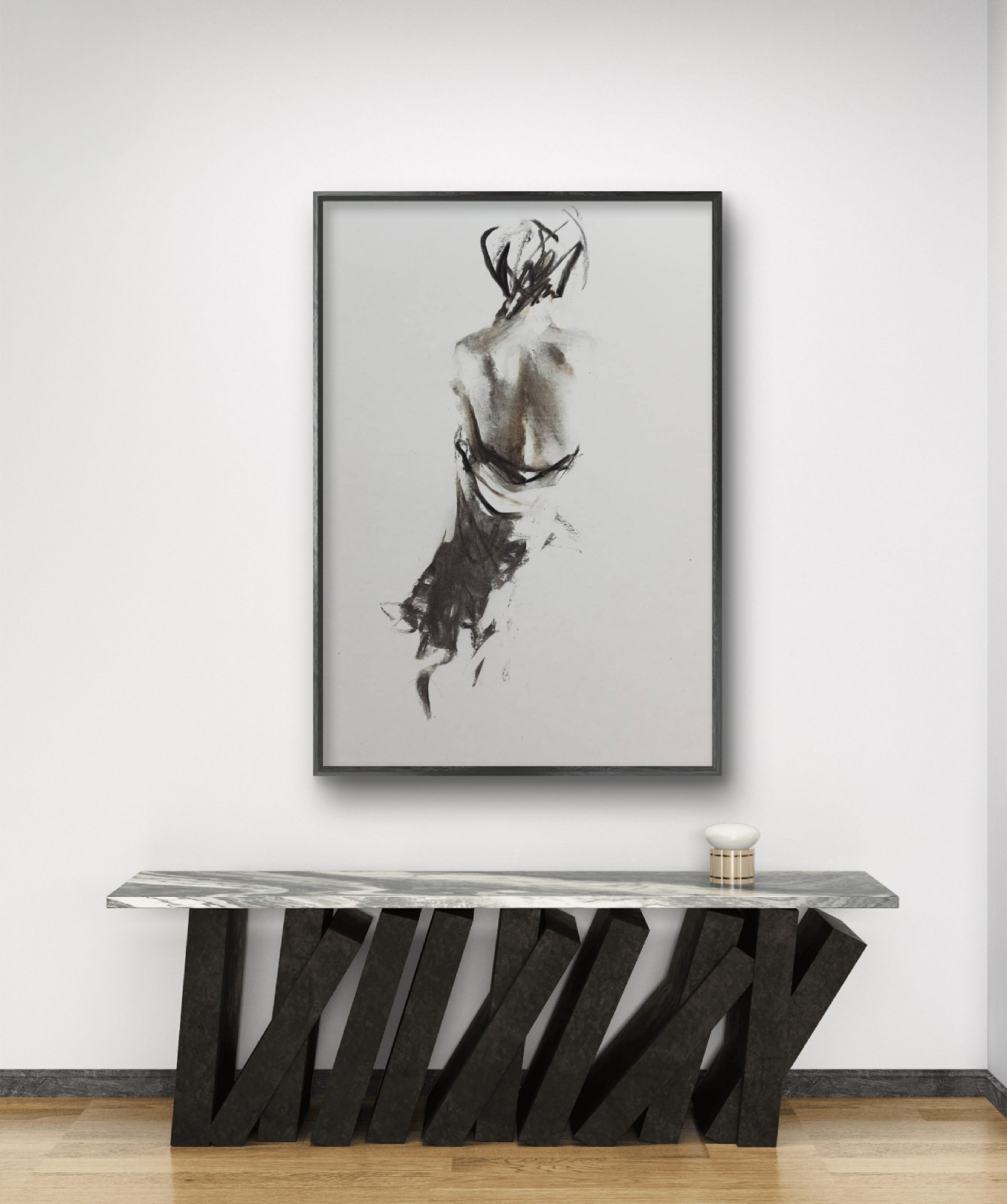 Przedstawiam inkografię na papierze w tonacji ciepłej bieli.