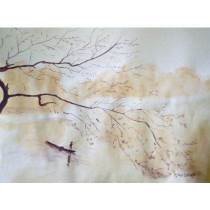 Rysunek malowany tradycyjnym tuszem w kamieniu, na białym papierze chińskim.