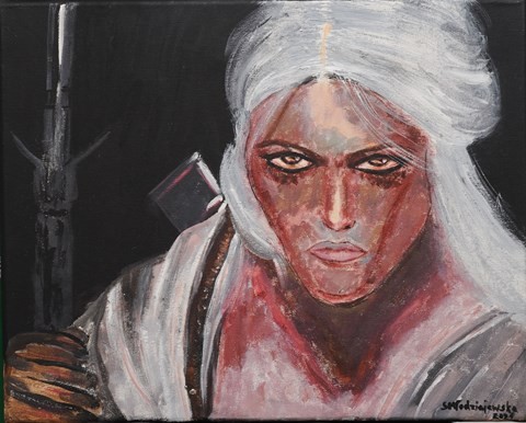 Inspiracją do powstania obrazu była postać Ciri z Wiedźmina i aktualna sytuacja w Afganistanie.