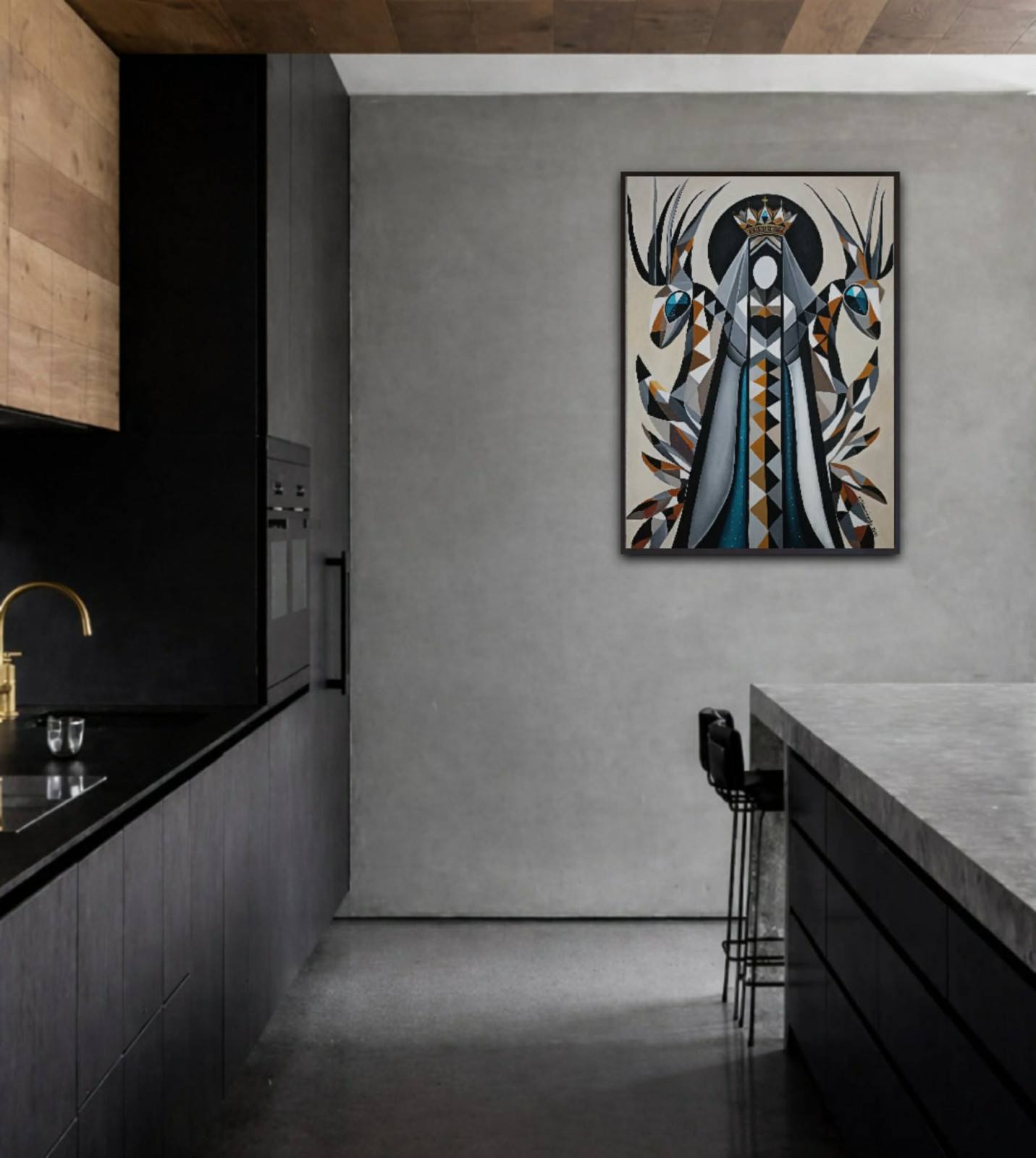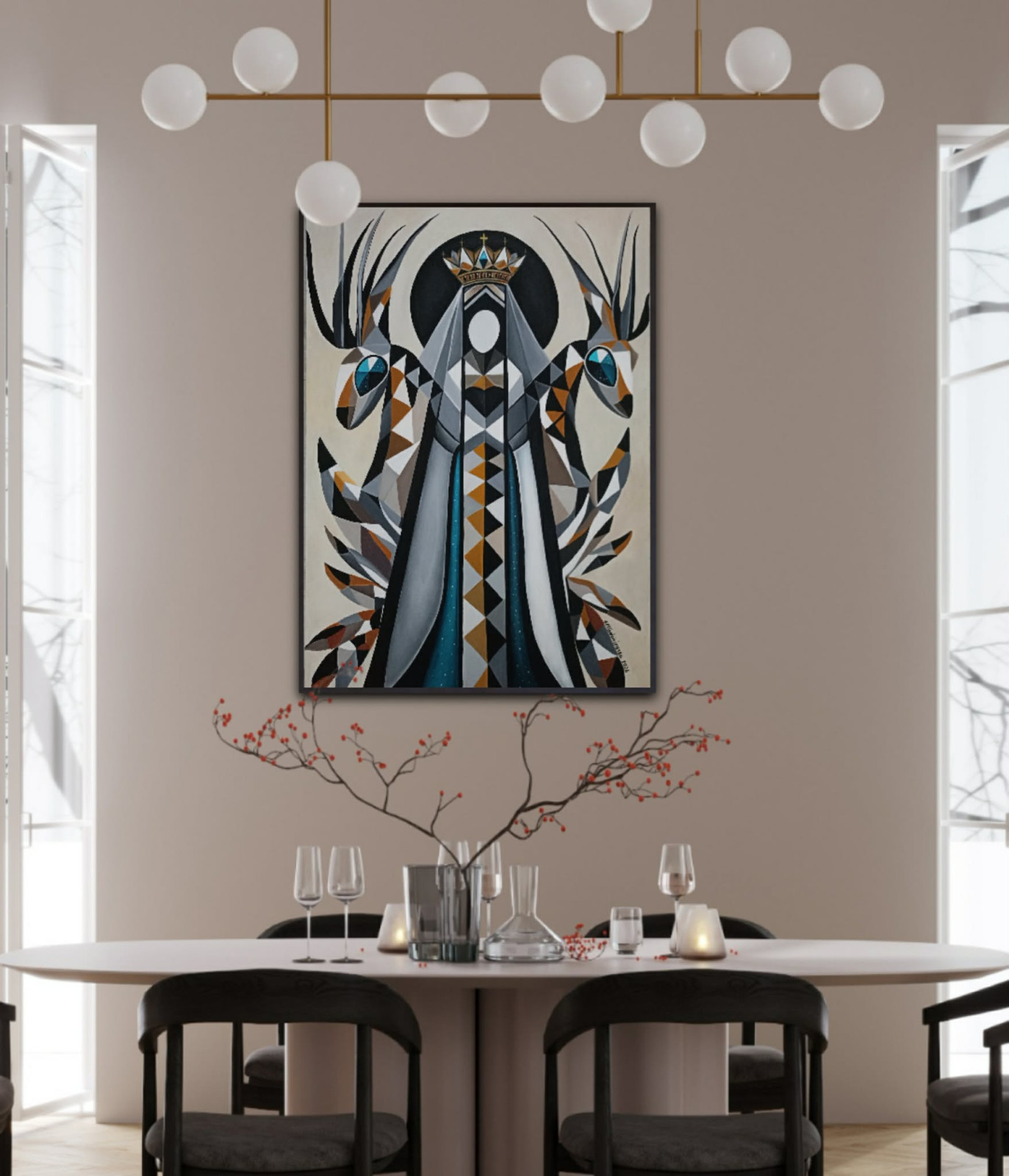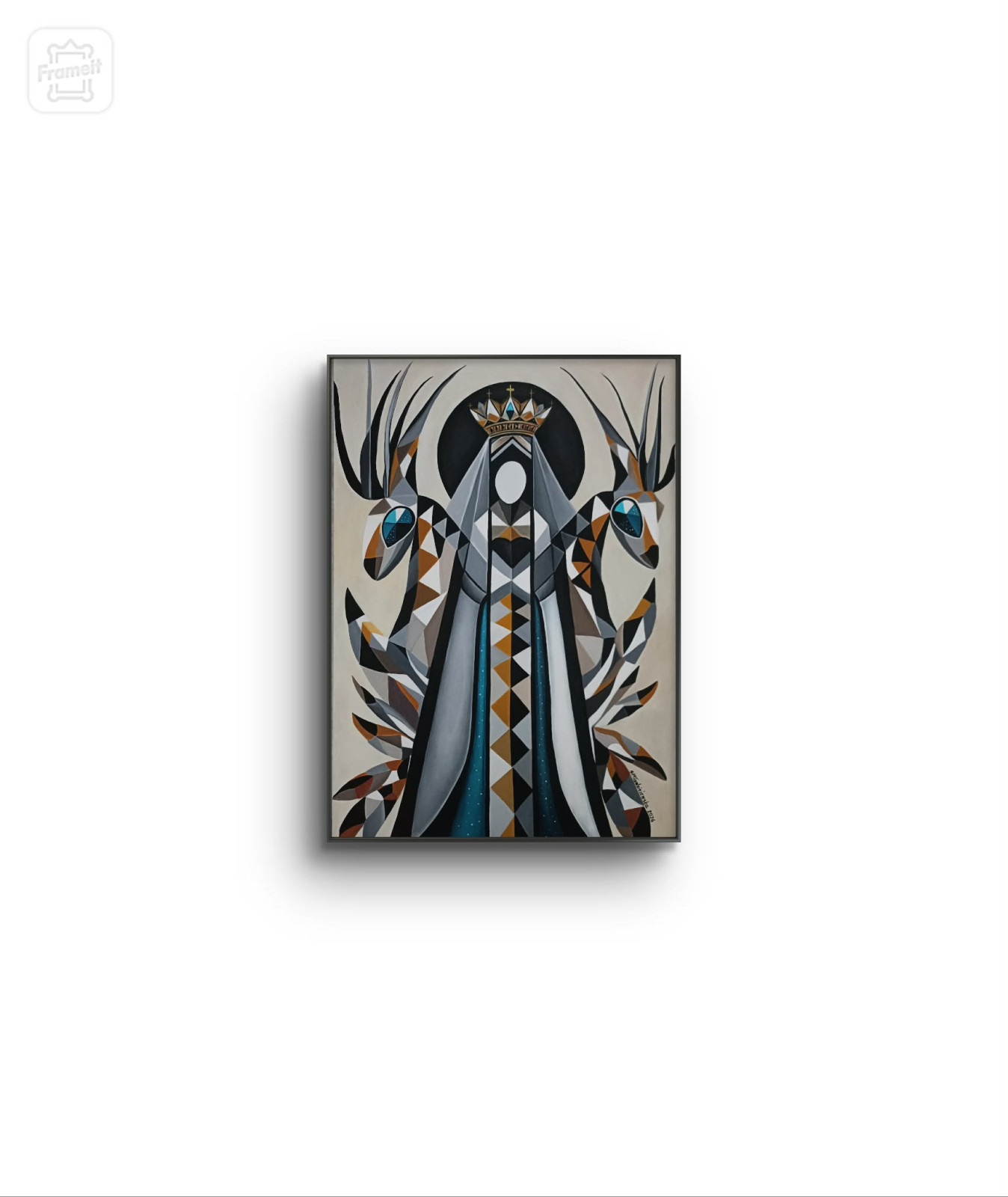 Na tym obrazie artystka ukazuje potężną wizję ochrony, intuicyjnego prowadzenia i harmonii, która doskonale odnajdzie się w nowoczesnych, kolekcjonerskich wnętrzach. Obraz eksploruje tematy kobiecej siły, intuicji oraz mistycznej więzi z naturą.