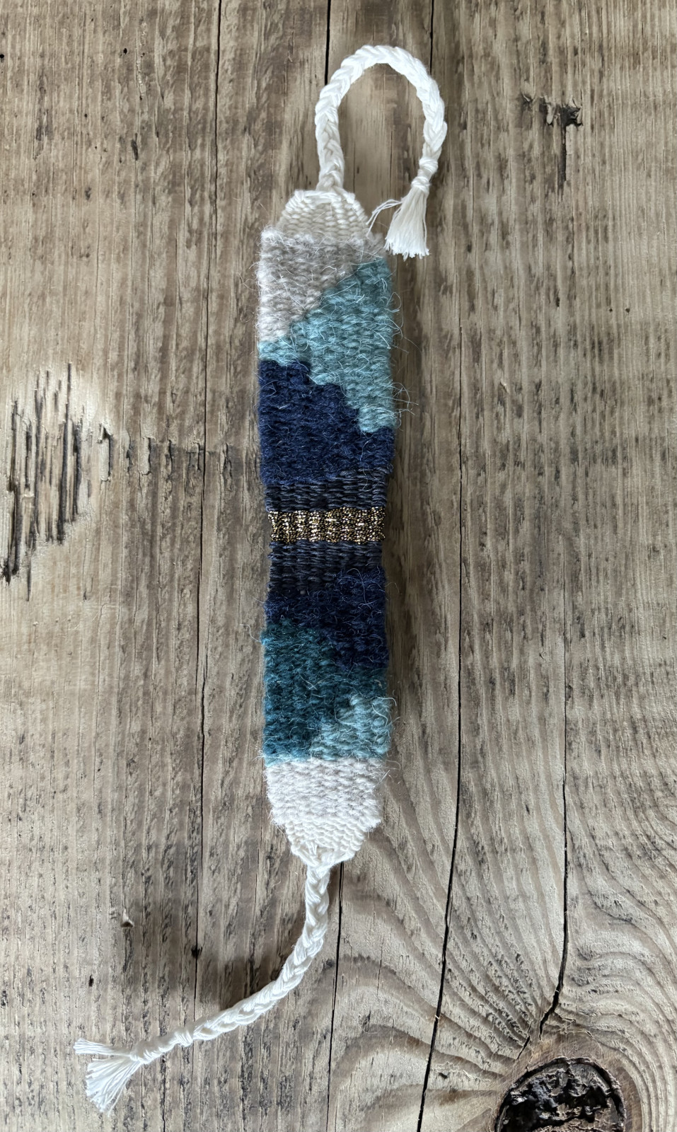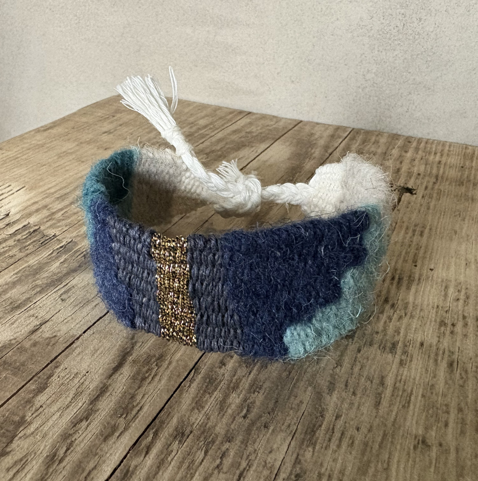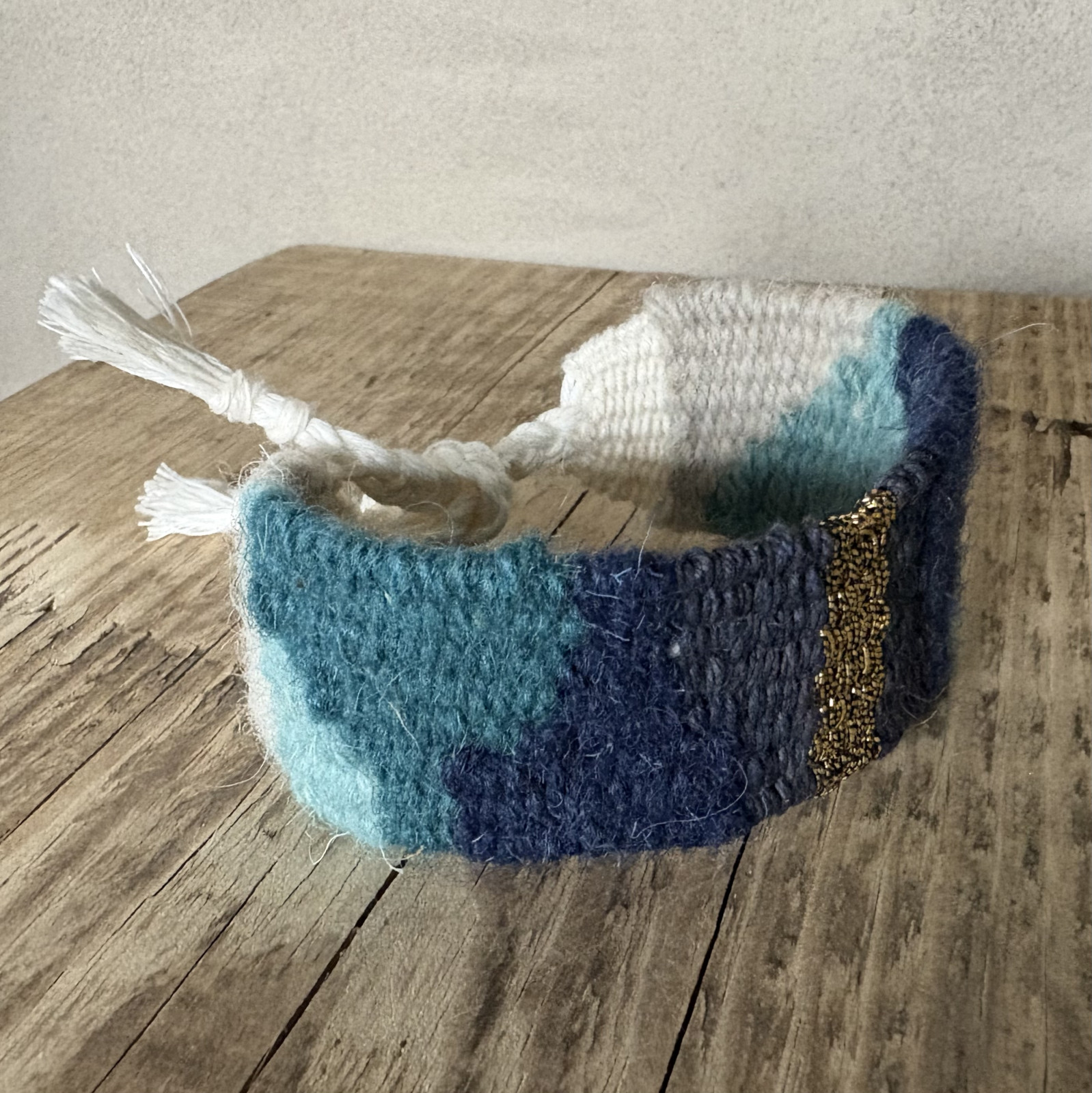 Bransoletka ręcznie tkana na krośnie.