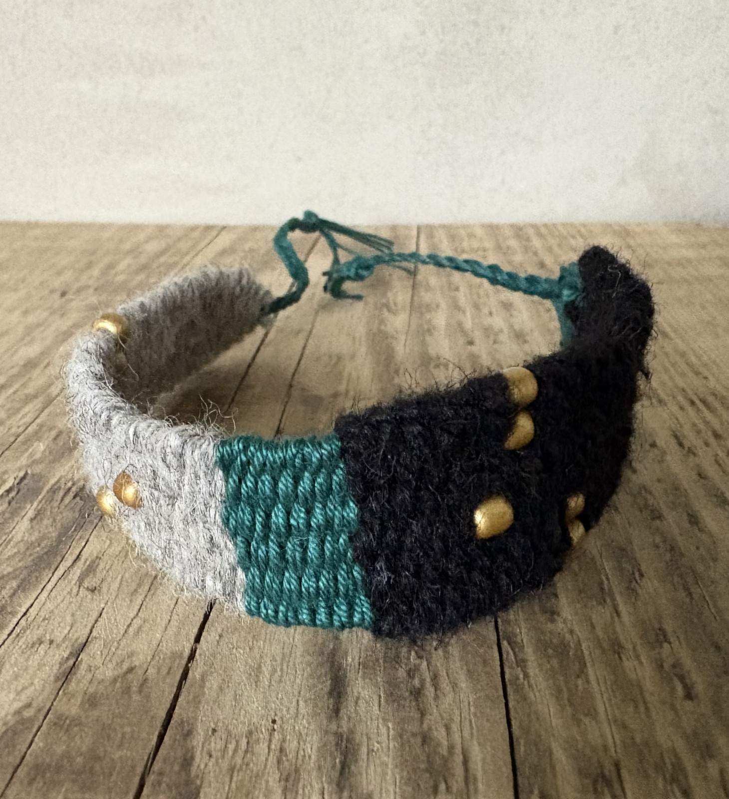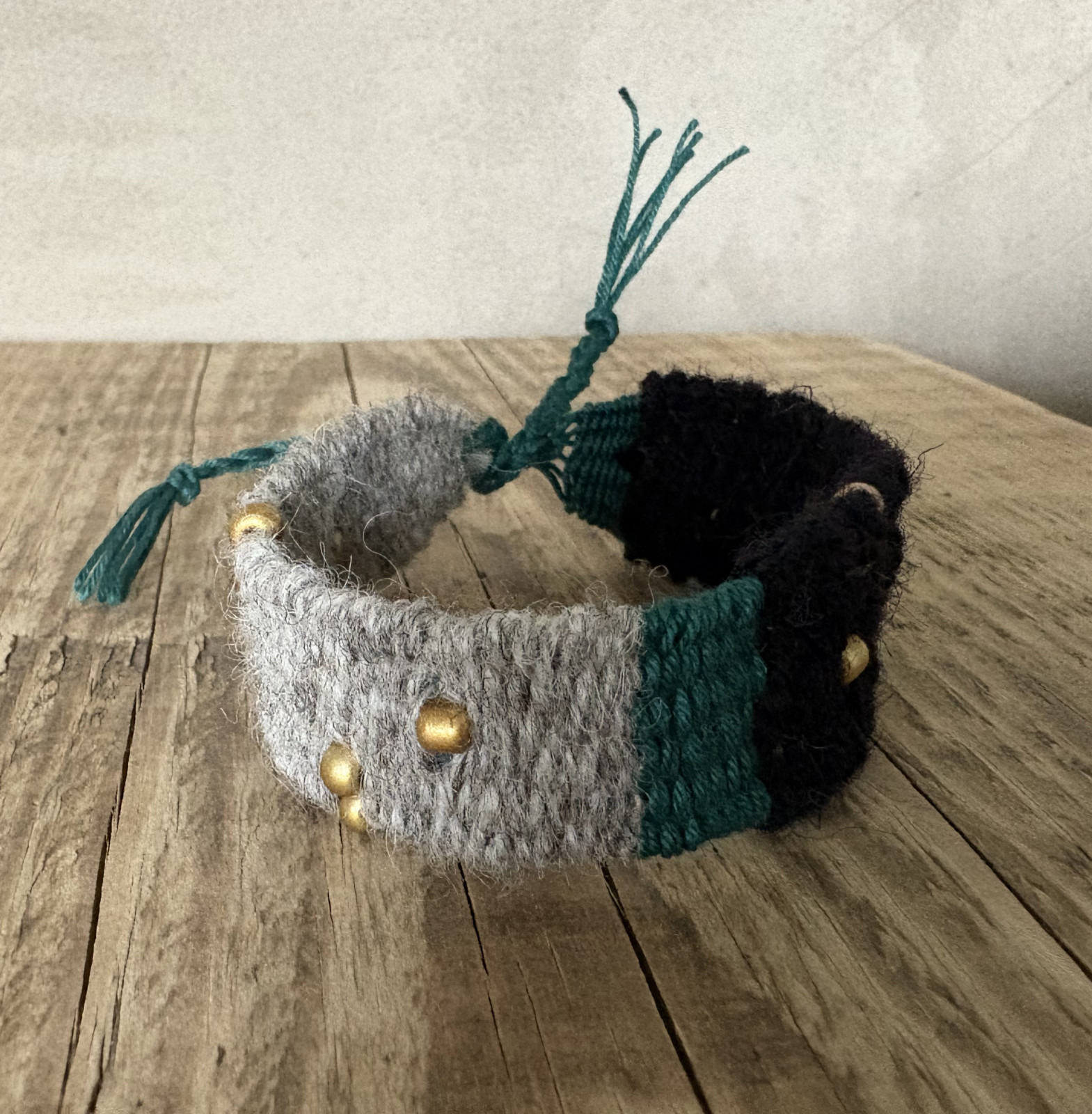 Bransoletka tkana ręcznie na krośnie.