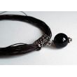 Bardzo efektowny i stylowy naszyjnik, wykonany z pęku brązowych linek jubilerskich, zapinanych na karabińczyk. Centrum to ażurowa orientalna zawieszka z kulą czarnego onyksu.