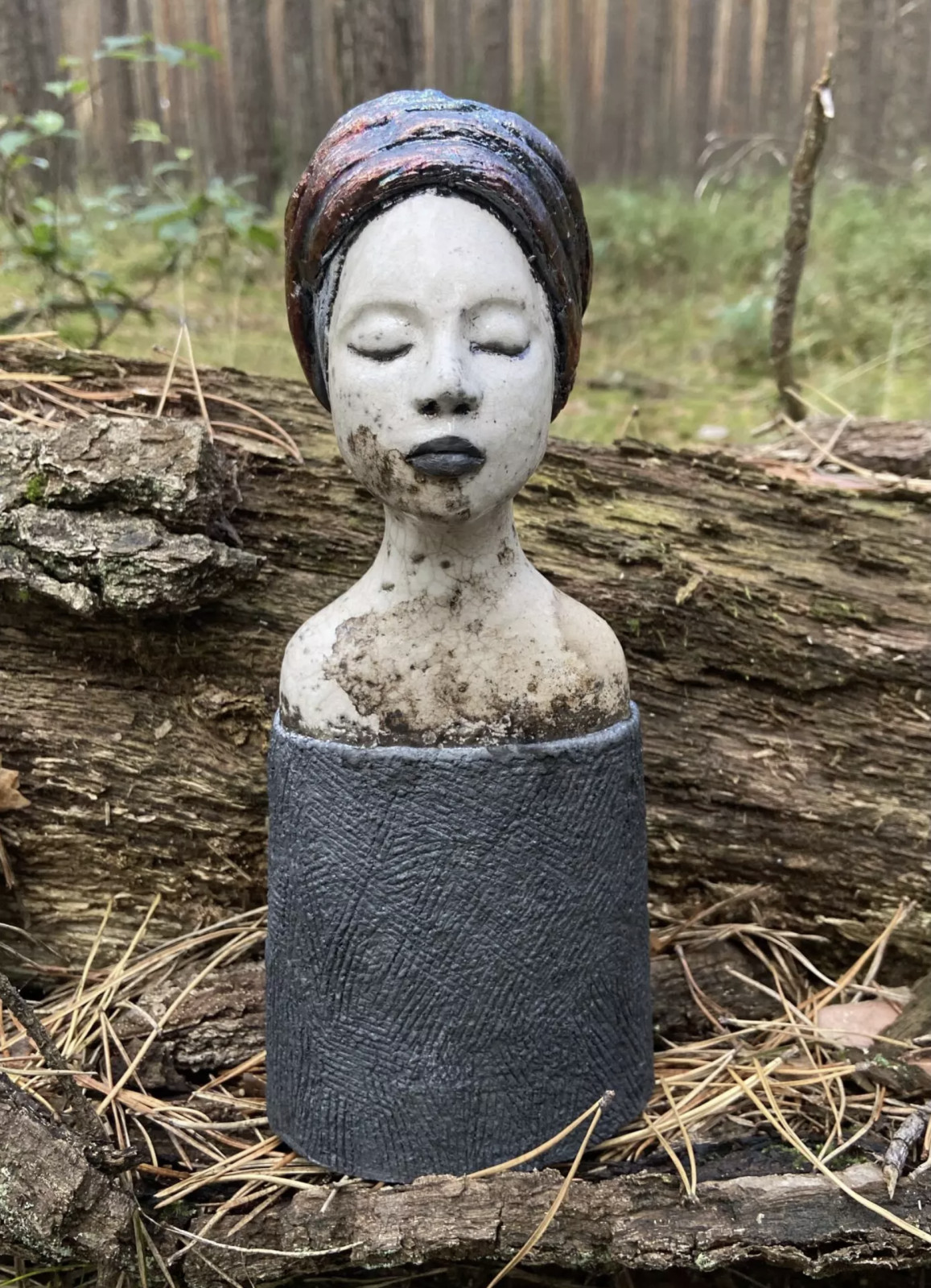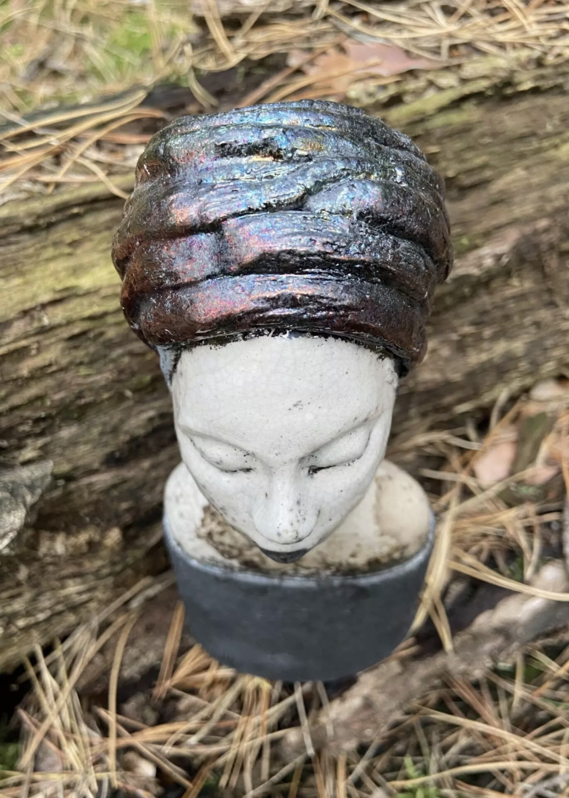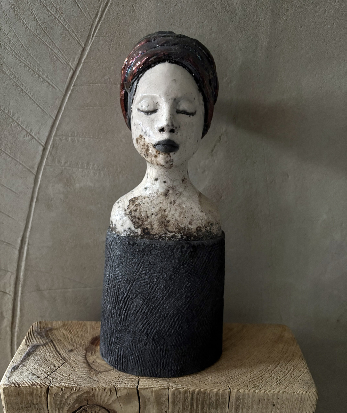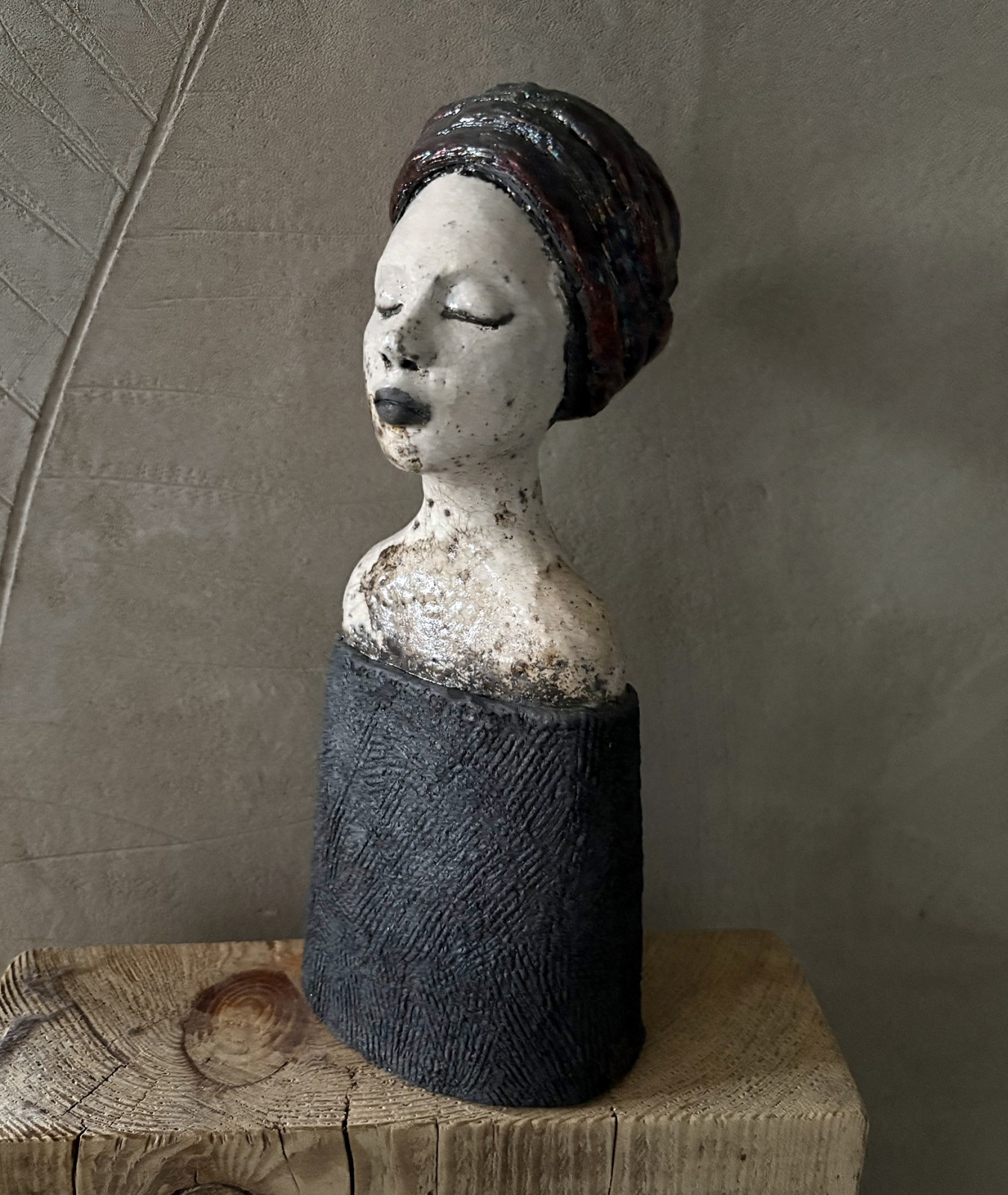 Mała rzeźba ceramiczna - postać dziewczyny w turbanie.