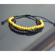 Zestaw trzech oddzielnych bransoletek z koralików w kolorze czarnym, żółtym i srebrnym. Każdą z trzech bransoletkę można nosić oddzielnie lub komponować dowolnie z innymi bransoletkami. Bransoletka w całości wypleciona z czarnego sznurka centralnie umieszczony ma żółty kwiatek howlitu z nierdzewną kulką. Bransoletki zrobione na sznurku jubilerskim, a zapięcie wyplecione ściegiem makramowym