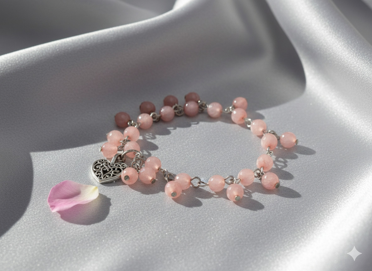 Bransoletka z Różowych Kamieni z Ażurowym Sercem