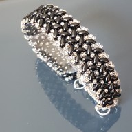 Bransoletka z czarnych hematytowych kryształków. Doskonale komponuje sie z innymi bransoletkami, sama również efektowna dzieki kilku zwojom. Bransoletki można nosić oddzielnie, czarna lub w kolorze hematytu ponieważ nawleczone zostały na dwie gumki silikonowe. Objętość na każdy nadgarstek. Można nosić jako naszyjnik.