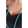 Bransoletka lub naszyjnik wg własnego uznania lub potrzeby. Linka jubilerska z koralikami w kolorach turkusowych, zielonych. Z perłą hodowlaną i zawieszką mosieżną patynowaną. Objętość bransoletki regulowana od 16 cm nadgarstka