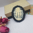 Broszka Camea Trzy Gracje. W kolorze eqrue na czarnym tle. Camea wykonana z żywicy, oprawa żywica czarna. Zapięcie metalowe.