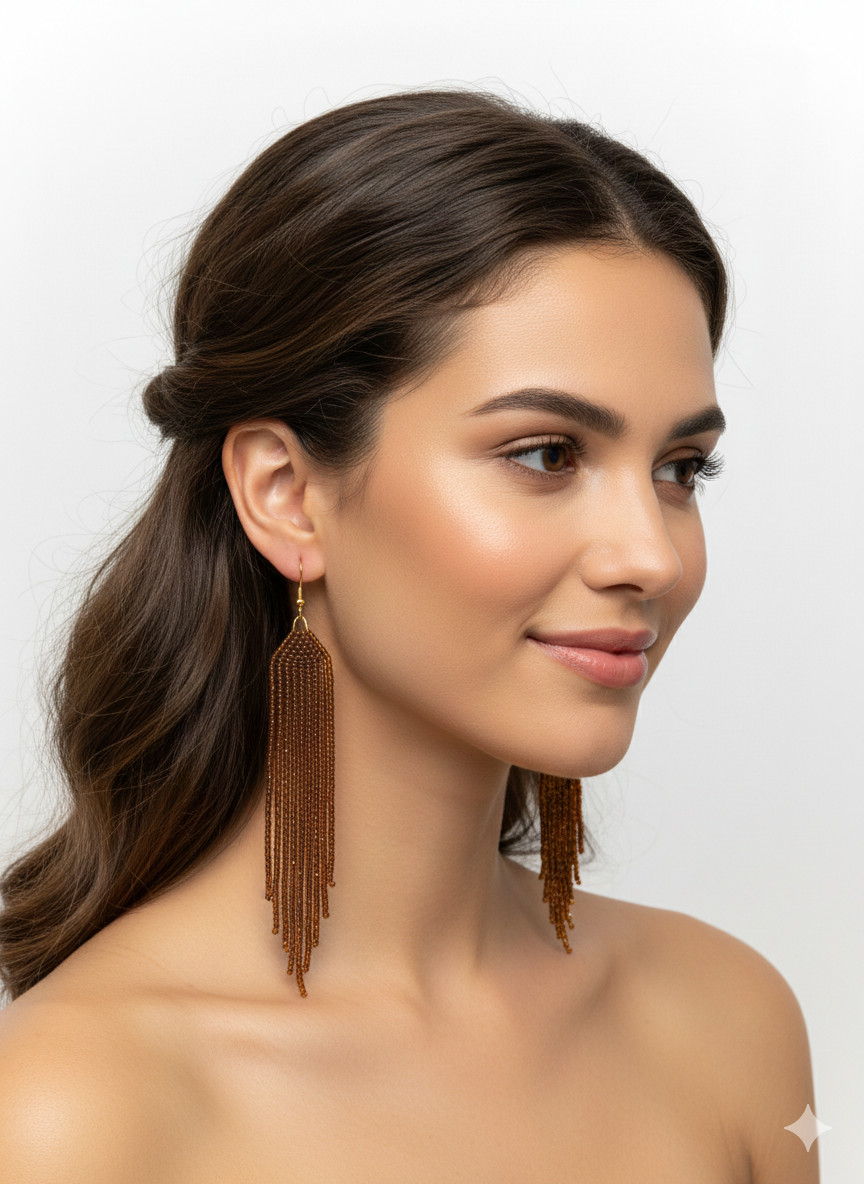 Kolczyki Chocolate Długie Kolczyki Beadingowe - Głęboki Brąz (13,5 cm)