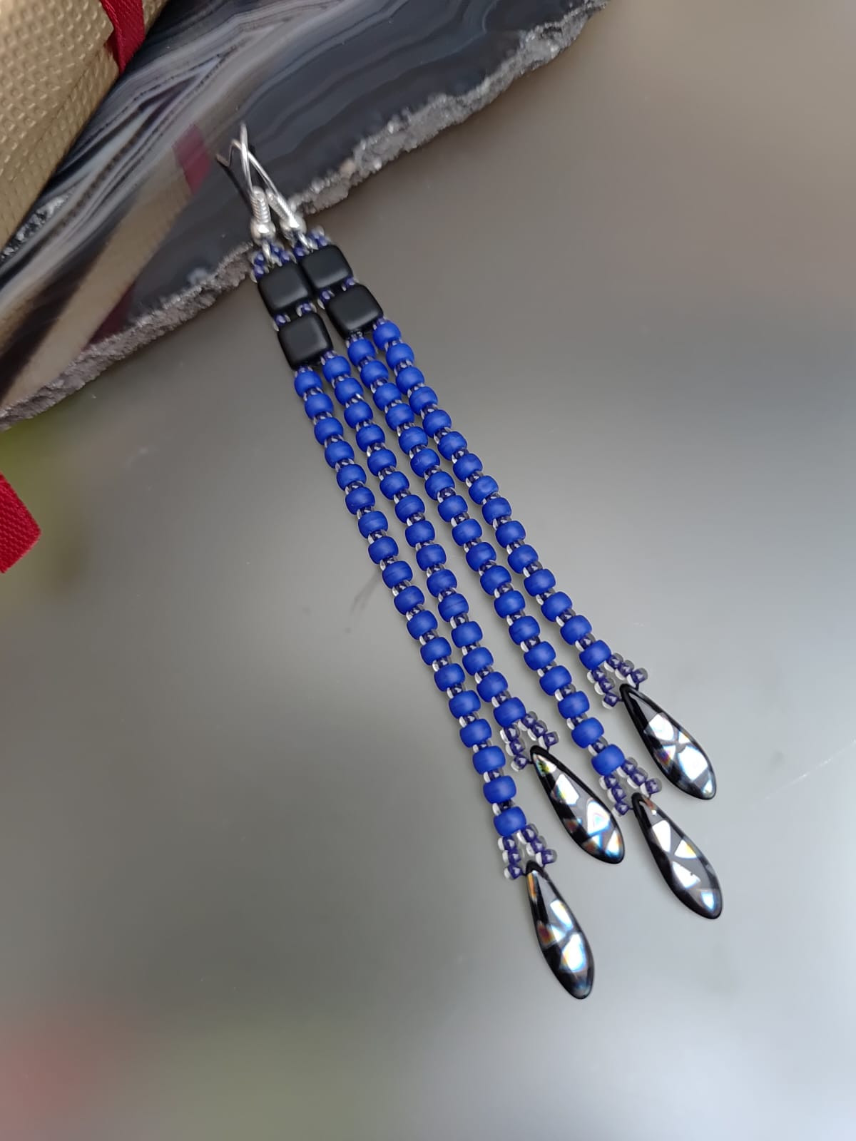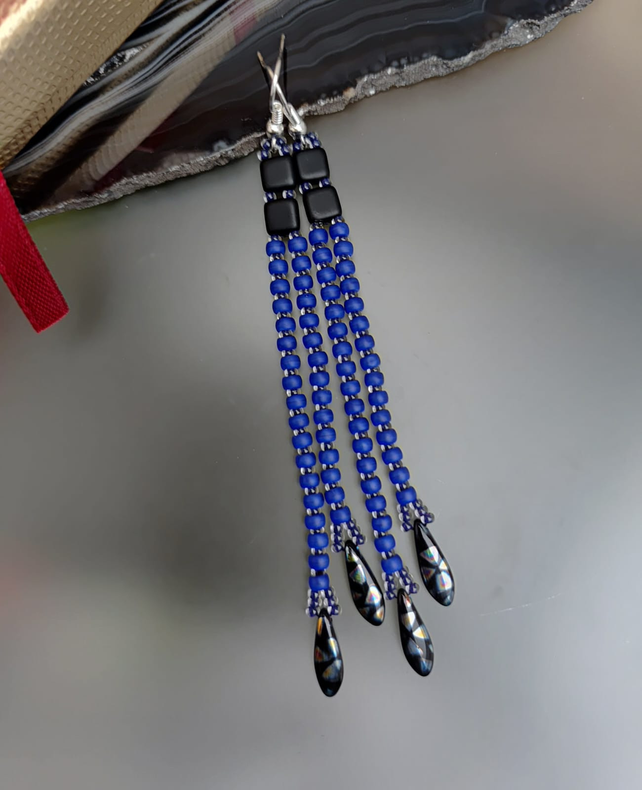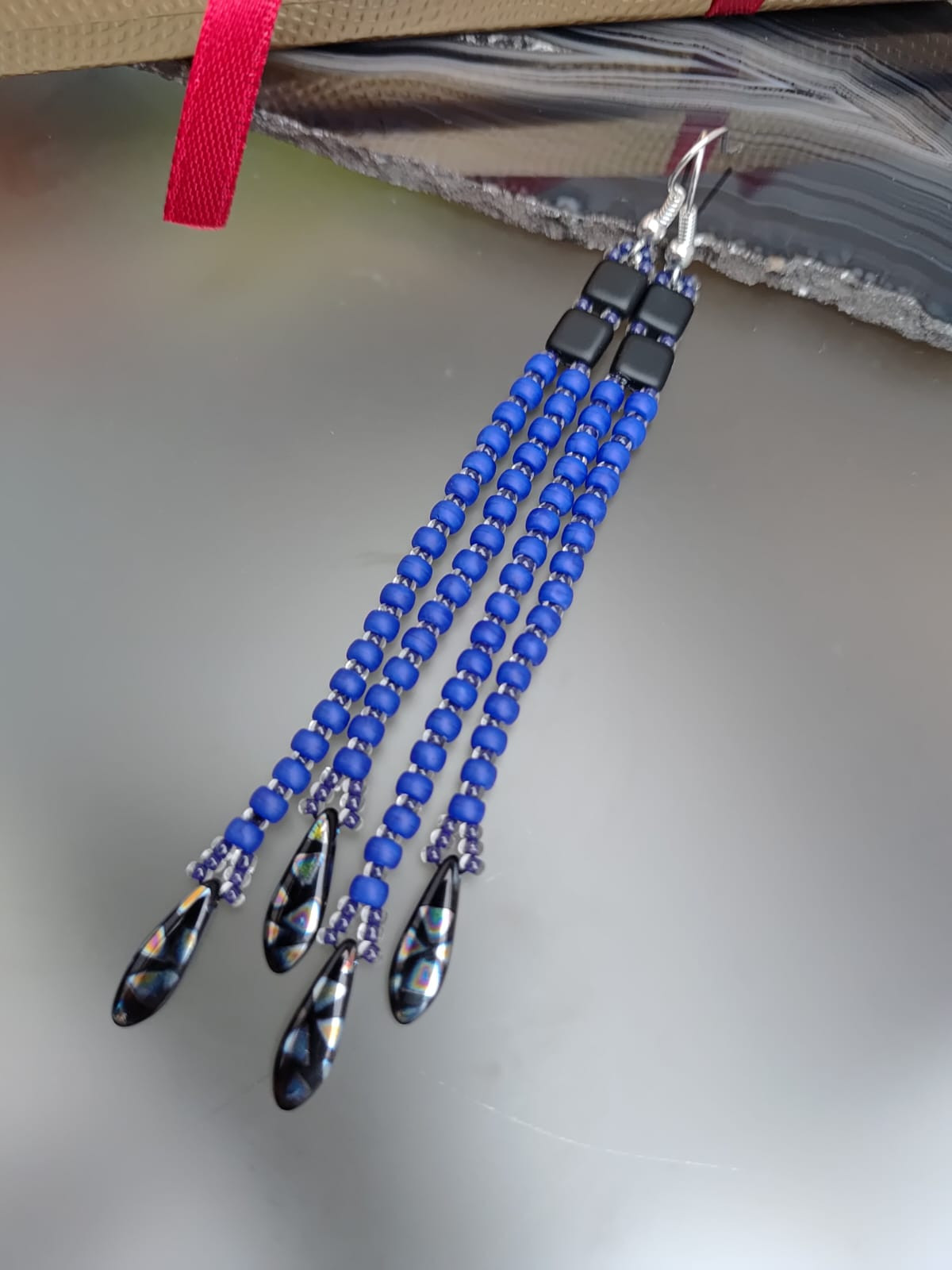 Kolczyki w kolorze szafirowym i piękne groty picasso. Długość kolczyka z biglem 11 cm