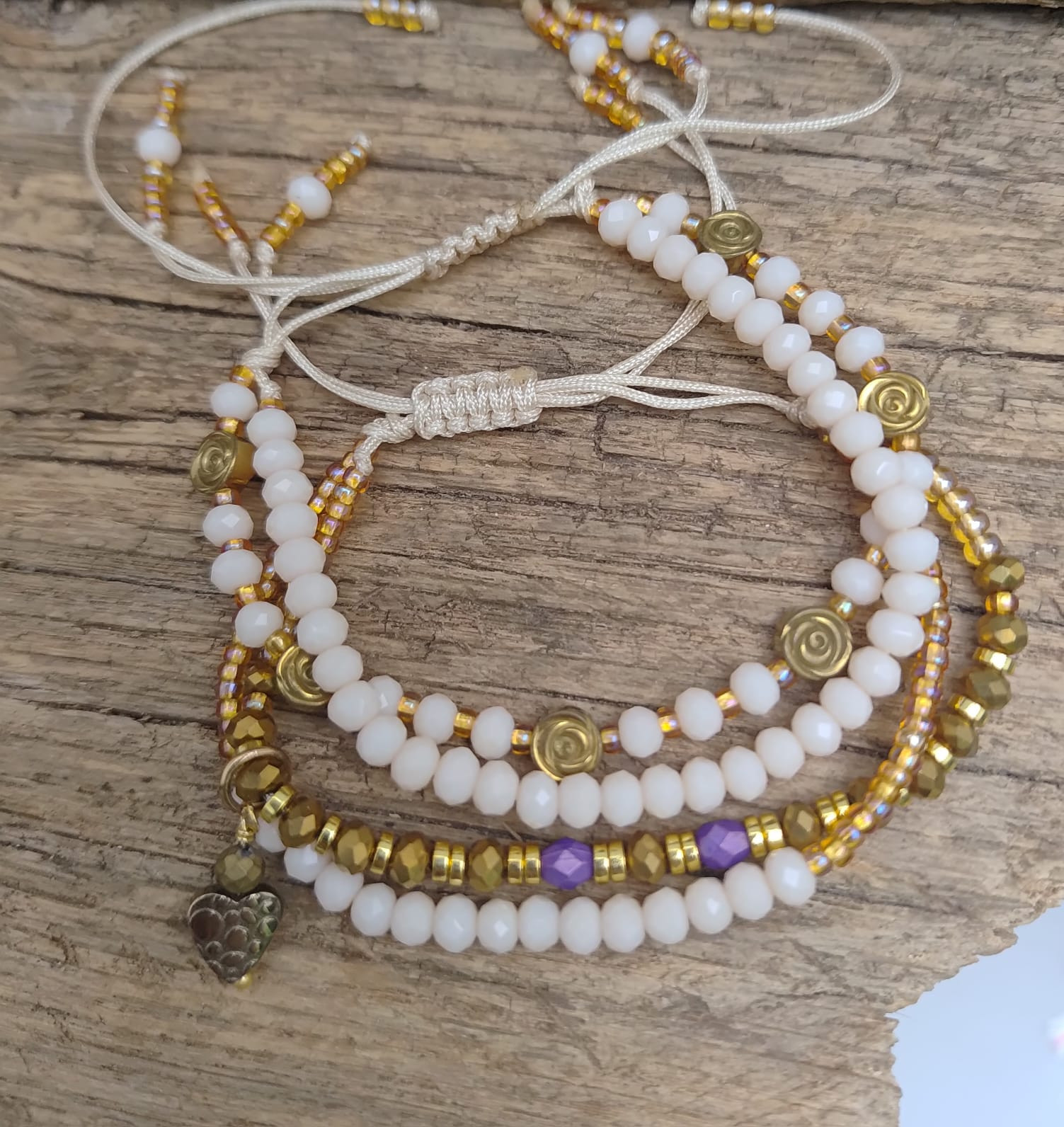 Bransoletka Na Sznurku Nude i Złote Koraliki 25.16