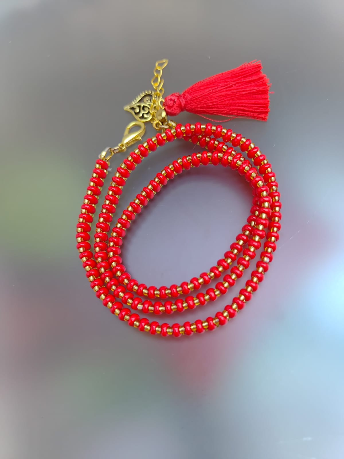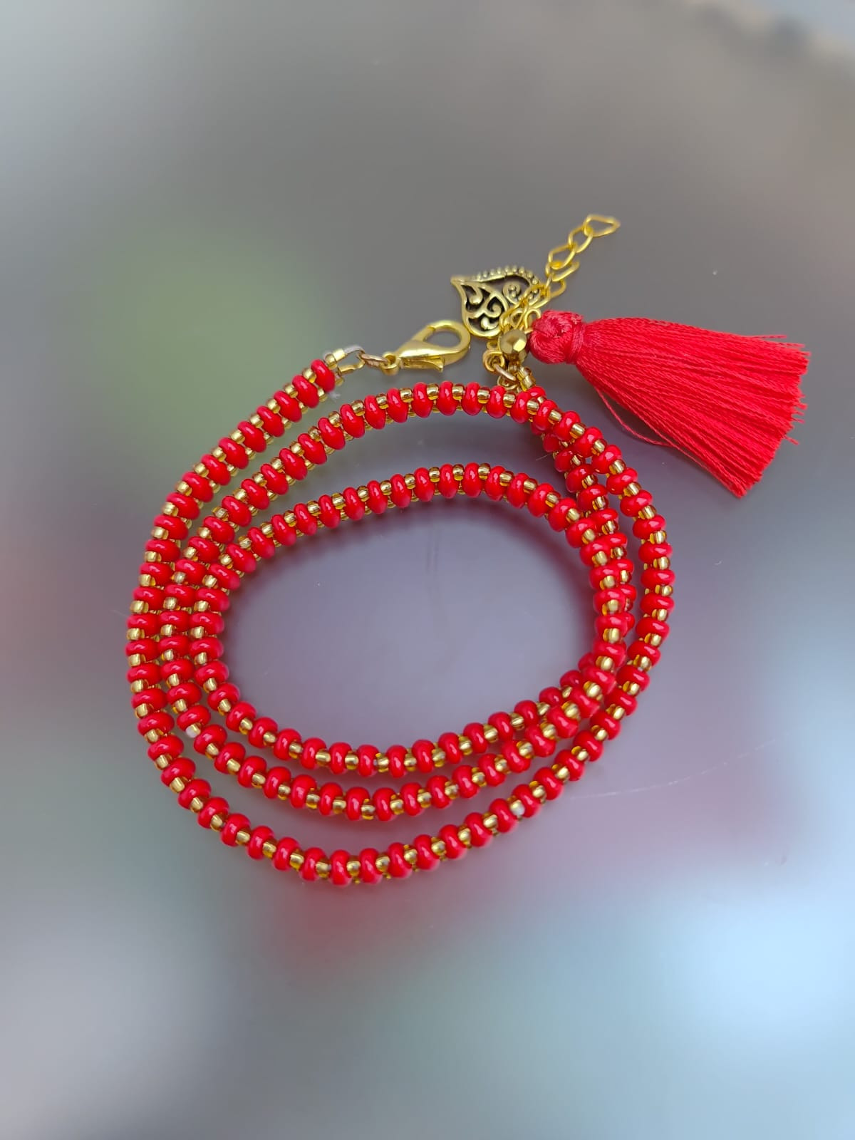Bransoletka Żmijka Czerwona Z Koralików 25.18