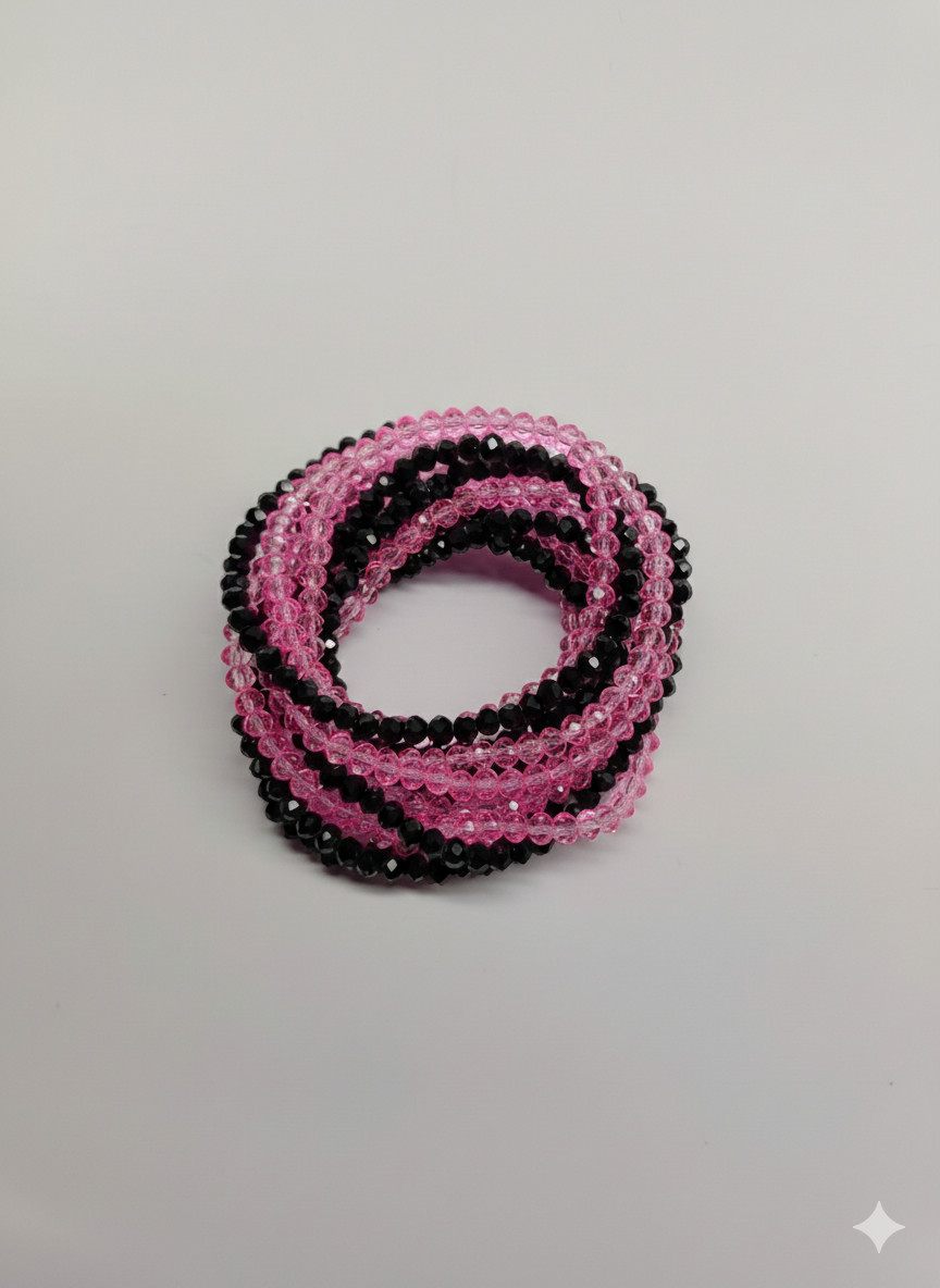 Naszyjnik Beadingowy Black & Pink – Podwójny Sznur na Elastycznej Gumce