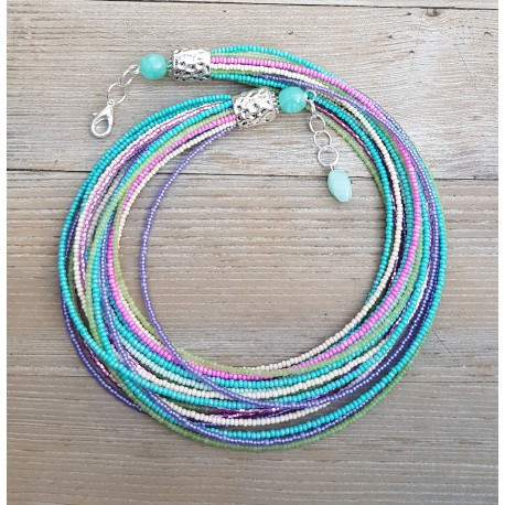 20 nitek koralikow w pastelowych kolorach, koraliki bardzo małe szklane, wykończenia metalowe, Długość naszyjnika zapiętego 21-23 cm, szkło, metal,
