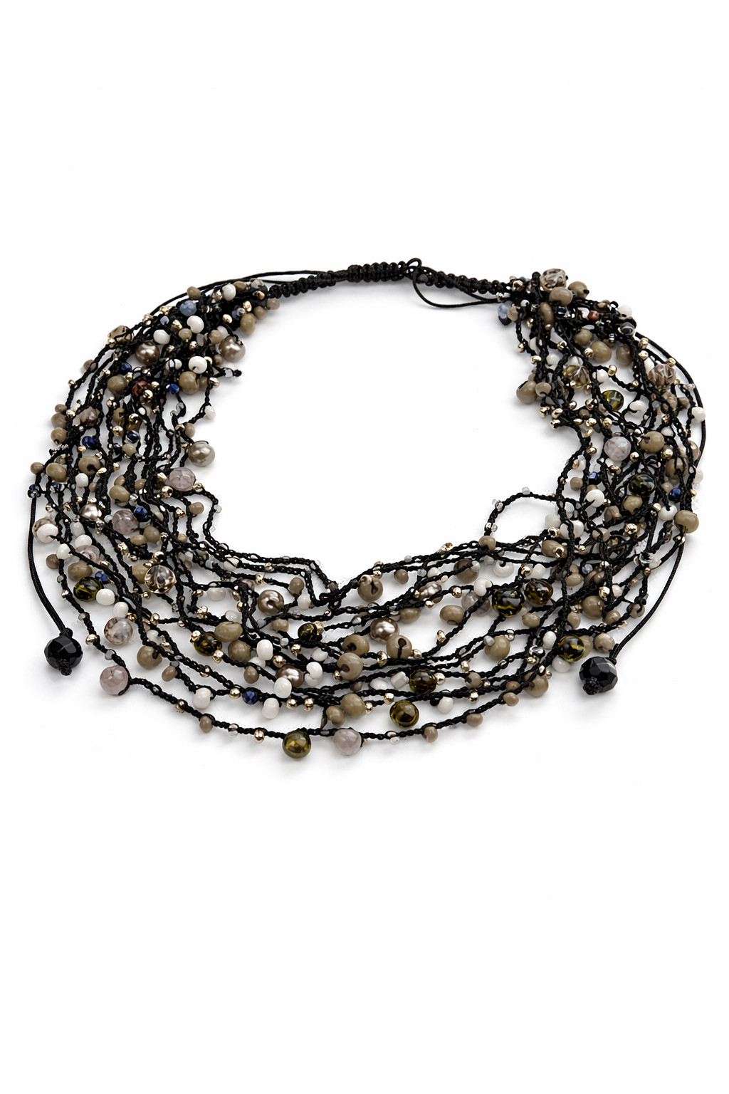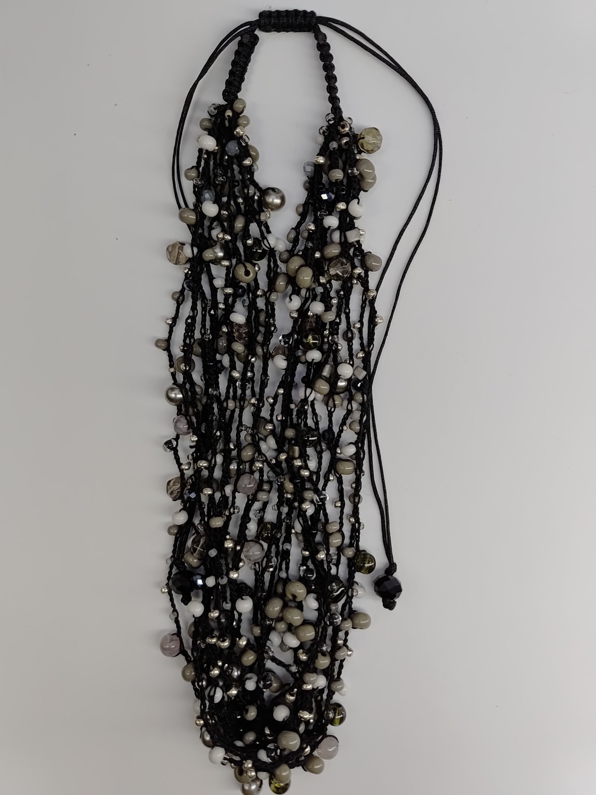Naszyjnik Czarny Sznurek Szare Korale Makrama
