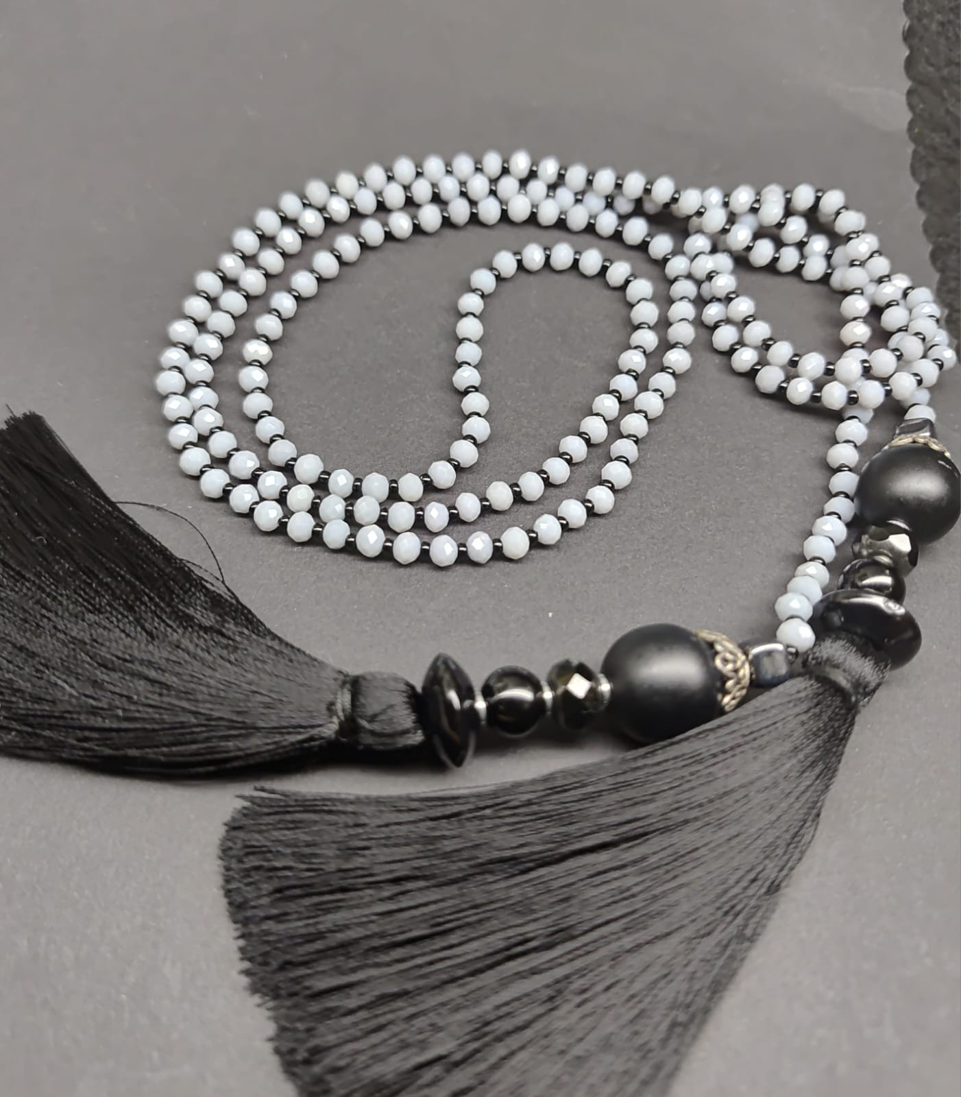 Naszyjnik Długi Sznur Kryształki Szklane z Chwostami