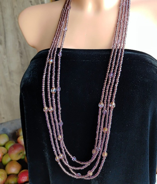 Naszyjnik Długie Fioletowe Korale Sznury Koraliki nasz24.117