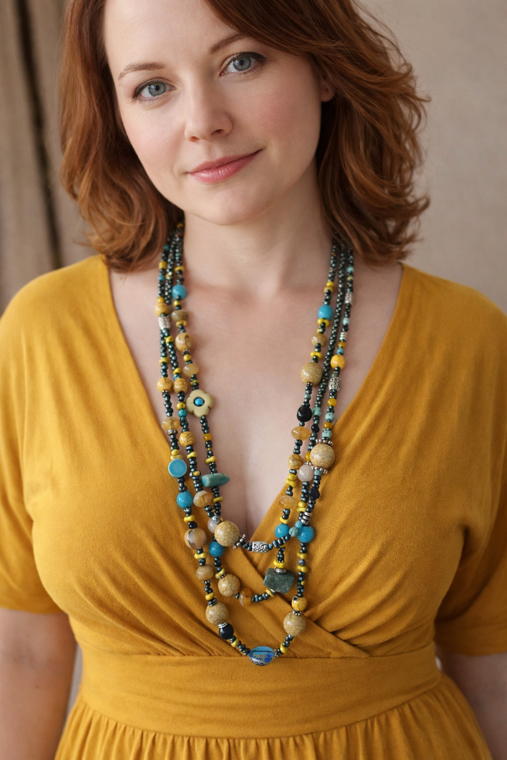 Naszyjnik Długie Sznury Boho Korale Żółty Howlit