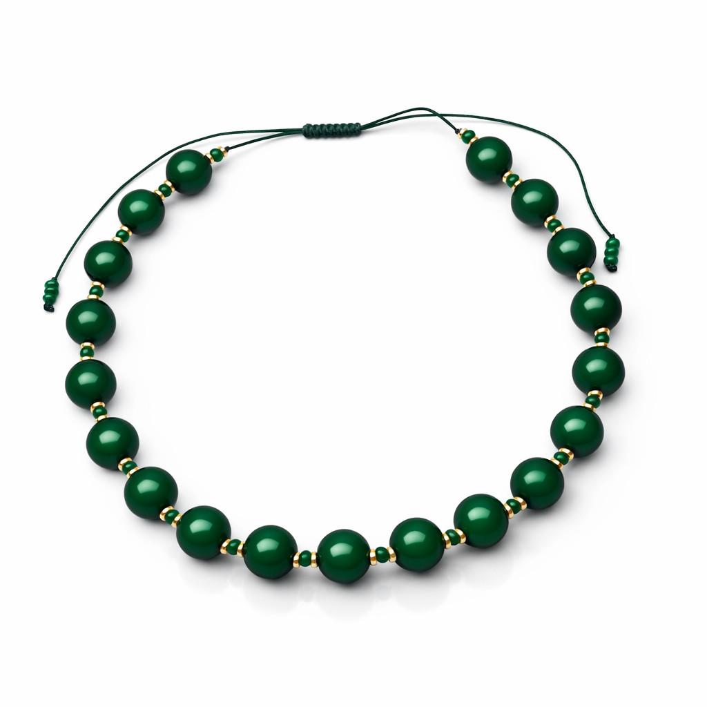 Doda klasy każdej stylizacji! Przedmiotem sprzedaży jest piękny naszyjnik wykonany z gładkich, lśniących korali w głębokim, szmaragdowym odcieniu zieleni. To biżuteria idealna zarówno do eleganckiej sukienki, jak i do białej koszuli czy swetra.
