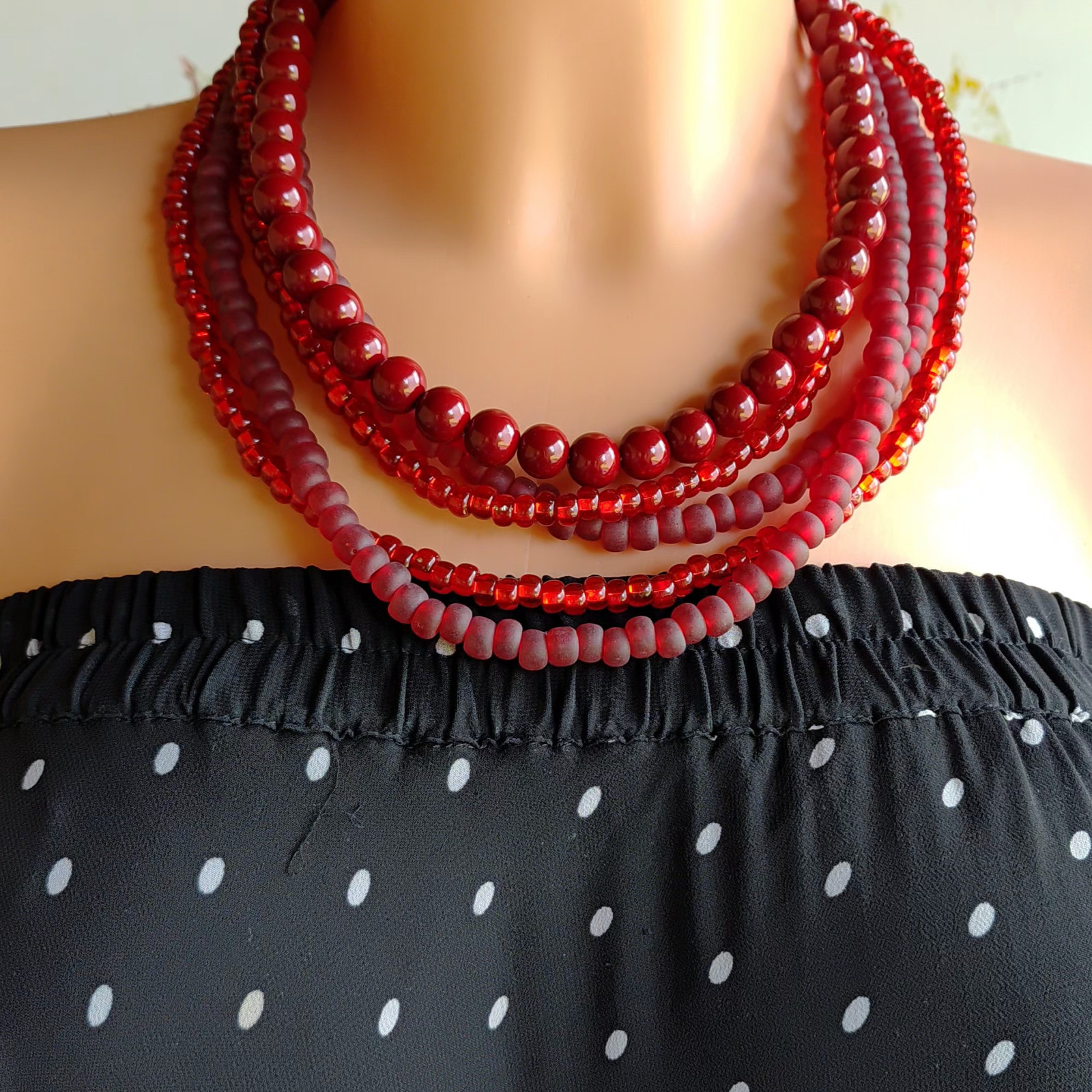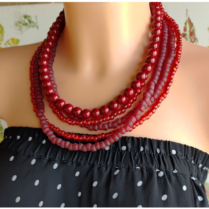 Naszyjnik Kolorowy w Stylu Boho Czerwone korale nasz24.81
