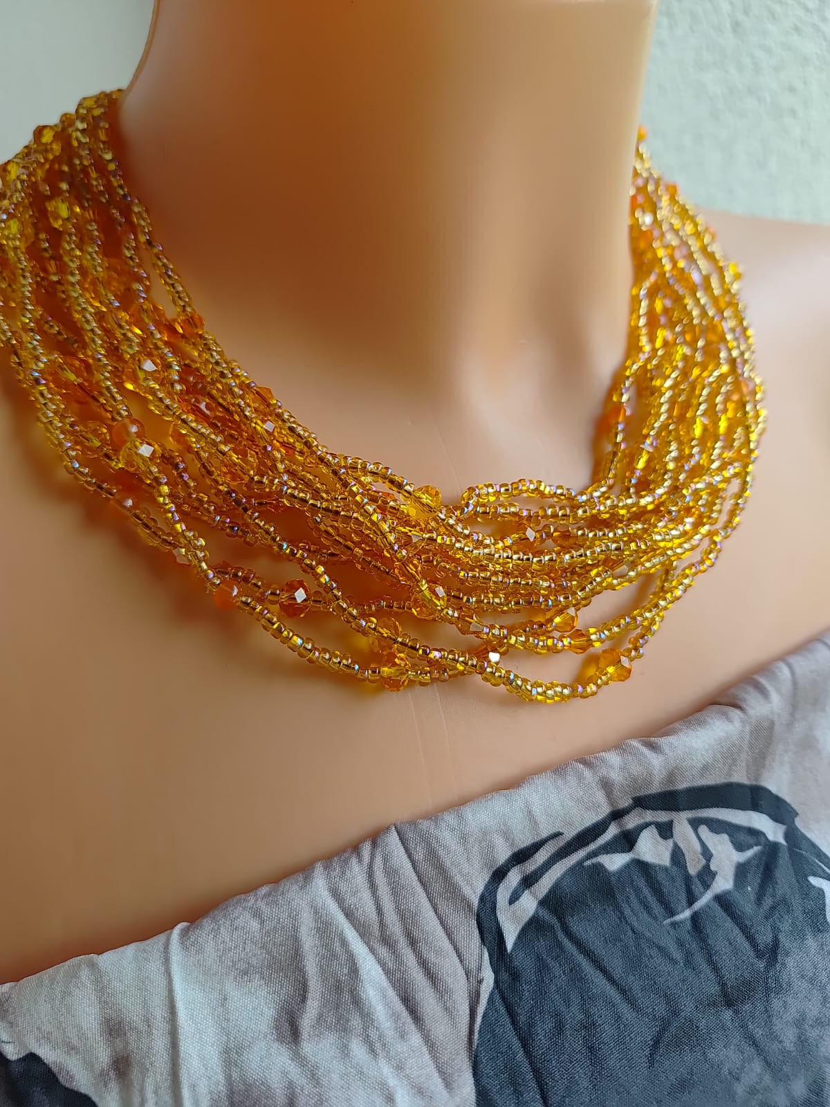Naszyjnik Krótkie Korale Miodowe Kryształki