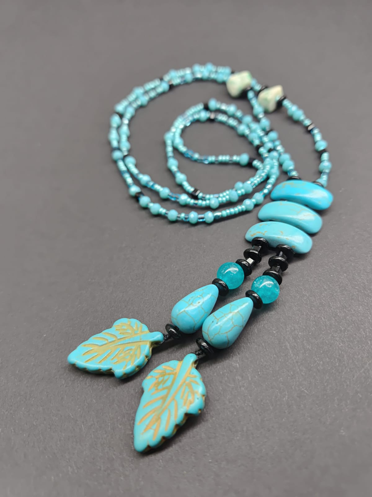 Naszyjnik Turkusowe Liście Howlit Korale