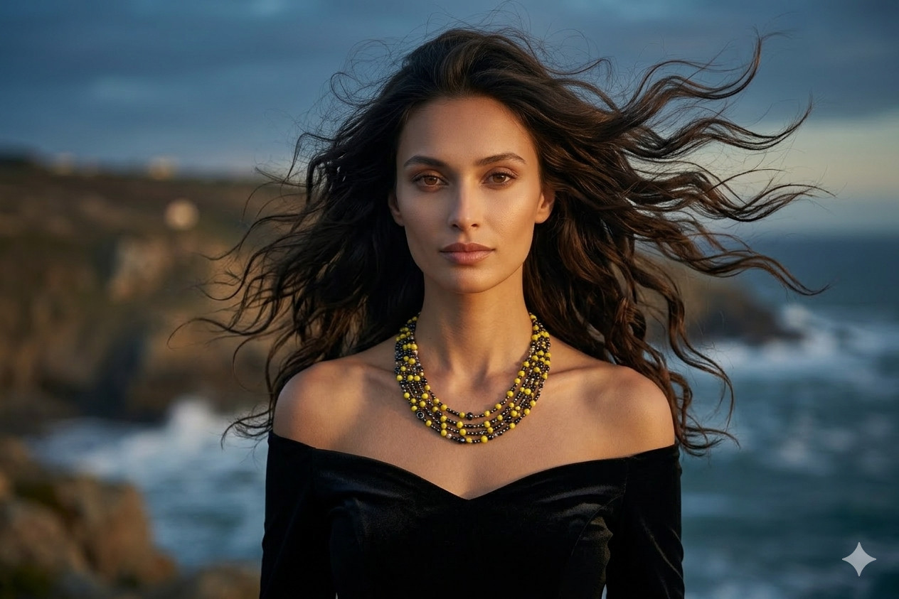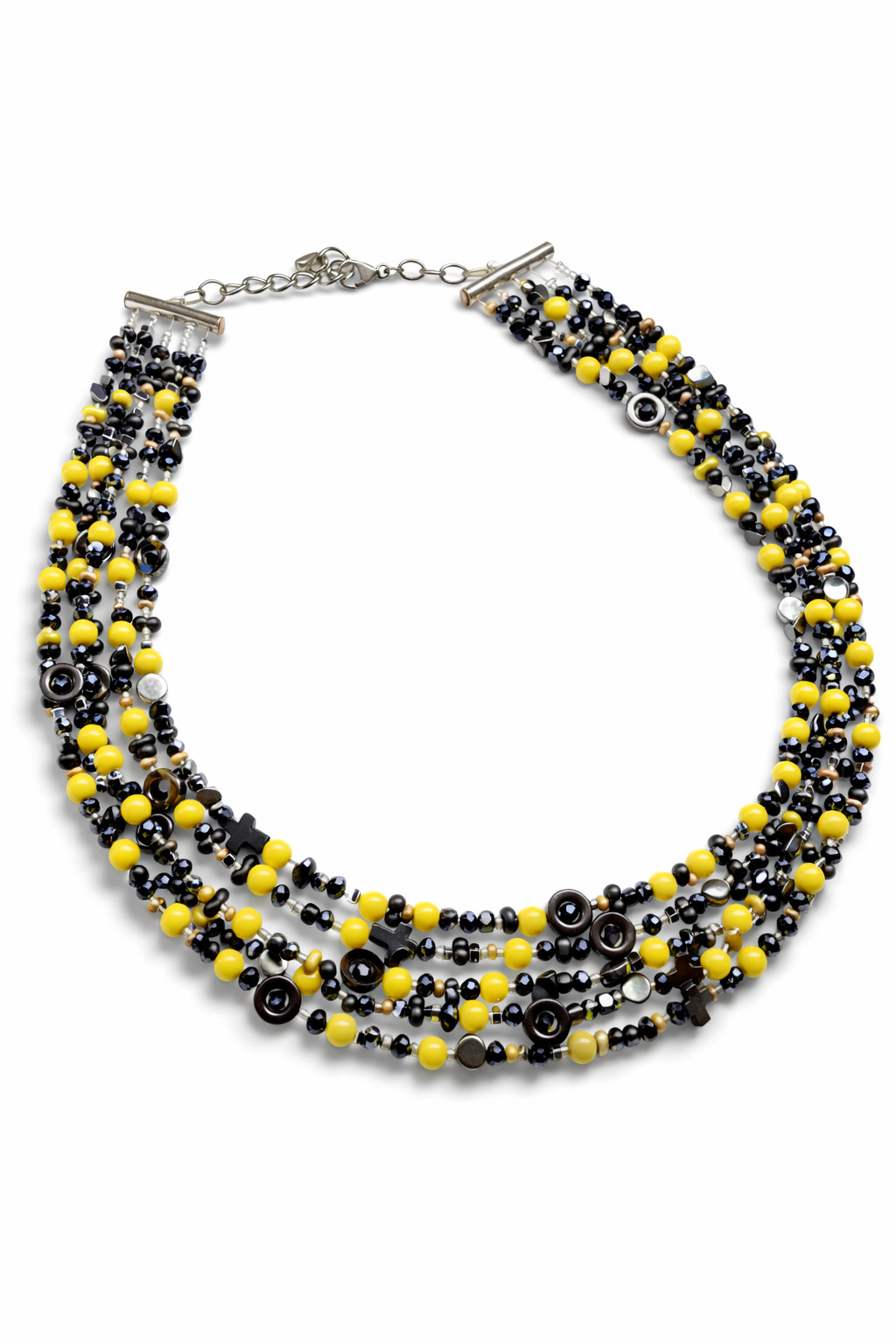 Nowoczesny Naszyjnik Multi-Strand - Hematyt i Cytrynowy Akryl