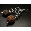 Mam przyjemność zaprezentować Państwu autorskie kolczyki wykonane w technice witrażowej z miedzi oraz 16 mm kul brązowej lawy wulkanicznej. Kolczyki lutowane przy użyciu witrażowego stopu cyny i srebra.Długość kolczyków wraz z biglami wynosi 9 cm.Bigle wykonane ze srebra próby 930.