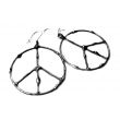 Wykonane ręcznie według własnego projektu kolczyki koła w stylu tiffany z miedzi i cyny z pacyfistycznym motywem. Do lutowania użyto witrażowego stopu cyny i srebra , kolczyki maja średnicę 4,5 cm a bigle wykonane są ze srebra próby 930. Całość patynowana na kor starego srebra i polerowana celem uzyskania połysku.